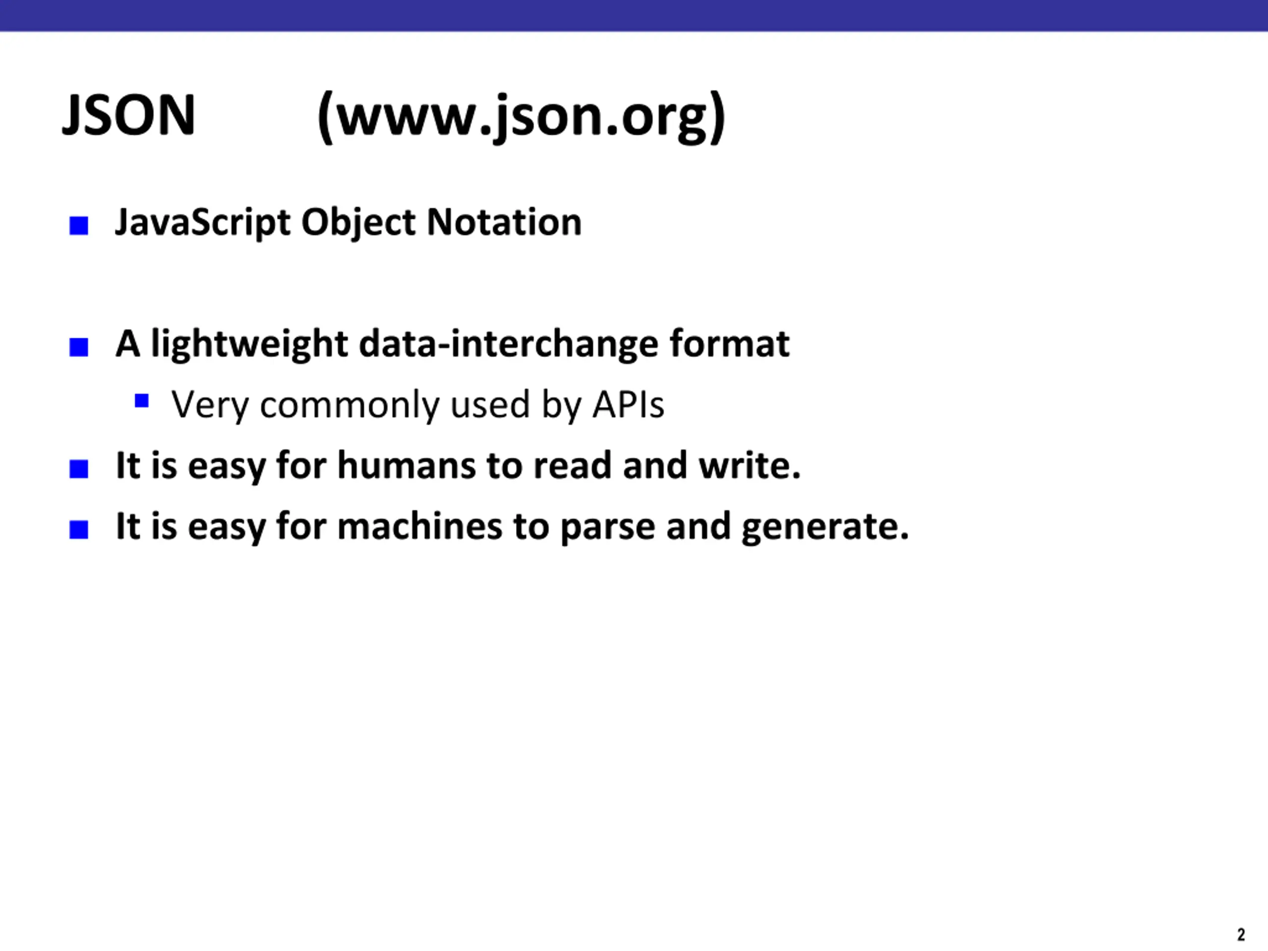 JSON (www.json.org) JavaScript Object Notation A lightweight data-interchange format Very commonly used by APIs It is easy for humans to read and write. It is easy for machines to parse and generate. 2
