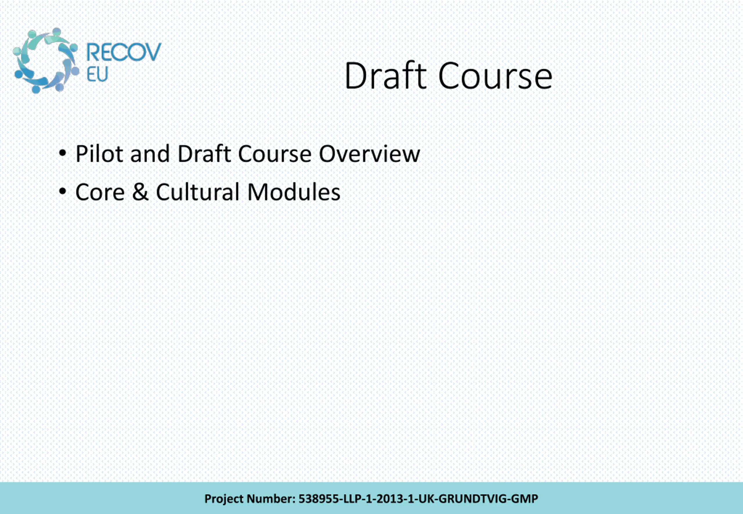 Draft Course Pilot and Draft Course Overview Core & Cultural Modules Project Number: 538955-LLP-1-2013-1-UK-GRUNDTVIG-GMP