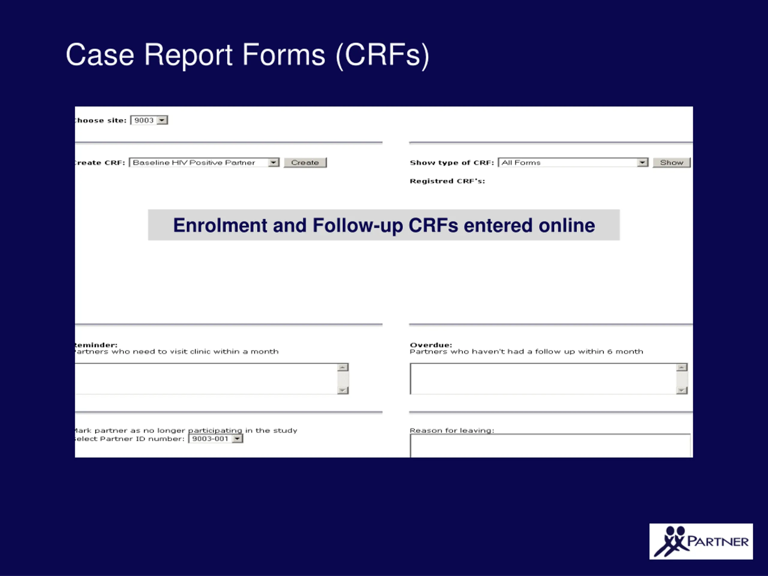 Case Report Forms (CRFs) Enrolment and Follow-up CRFs entered online