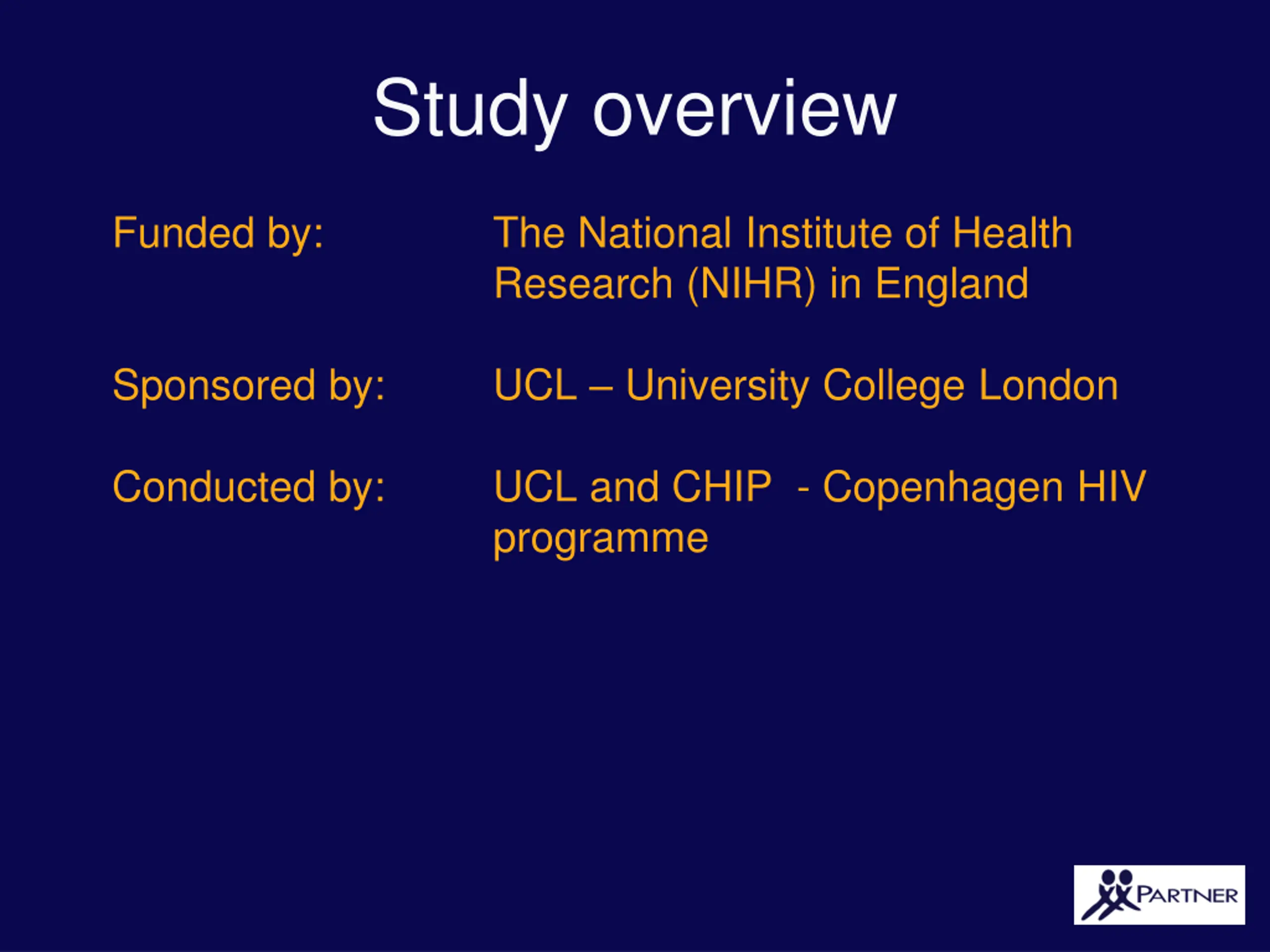 Study overview Funded by: The National Institute of Health Research (NIHR) in England Sponsored by: UCL University College London Conducted by: UCL and CHIP - Copenhagen HIV programme