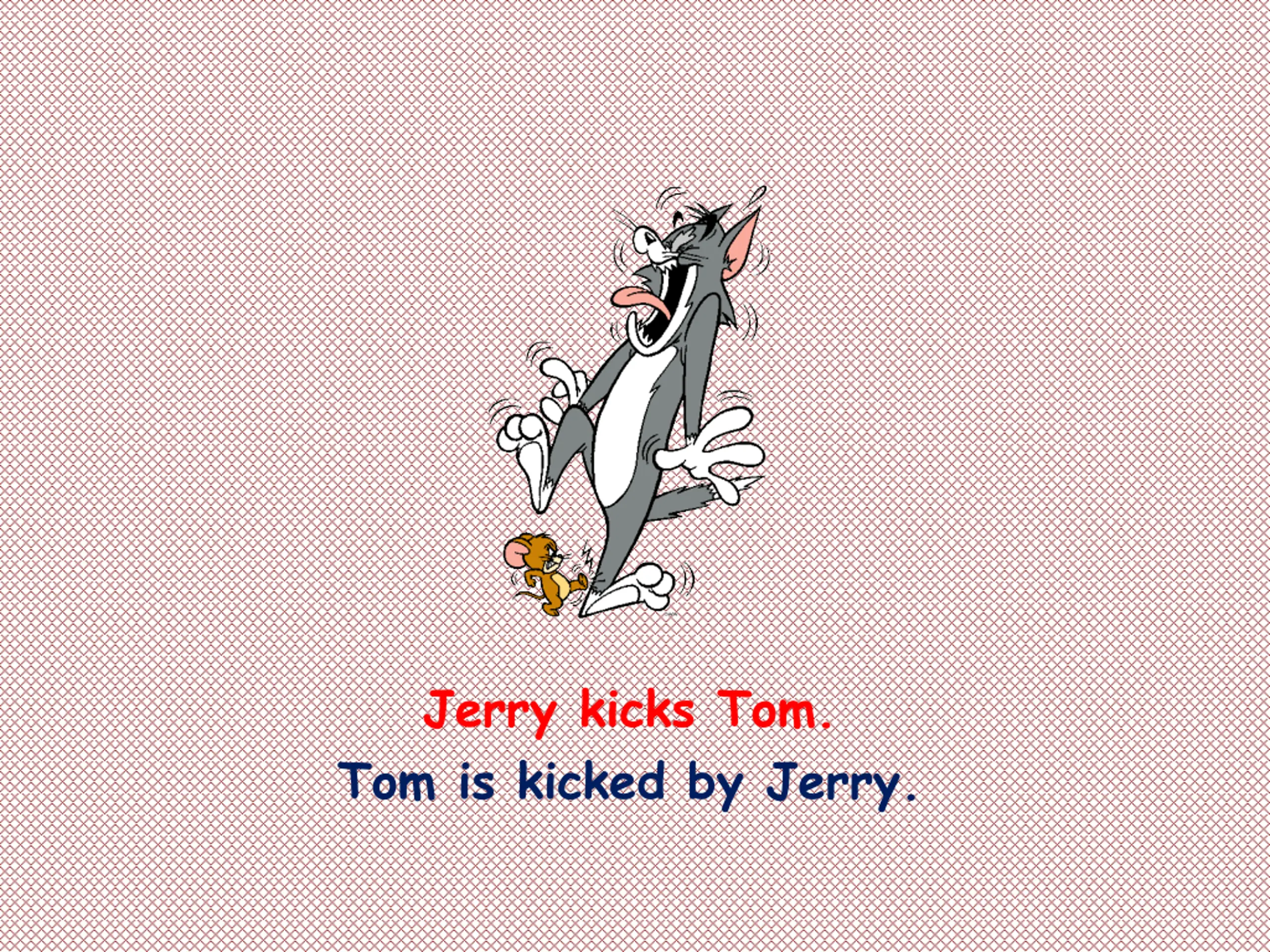Jerry kicks Tom. Tom is kicked by Jerry.