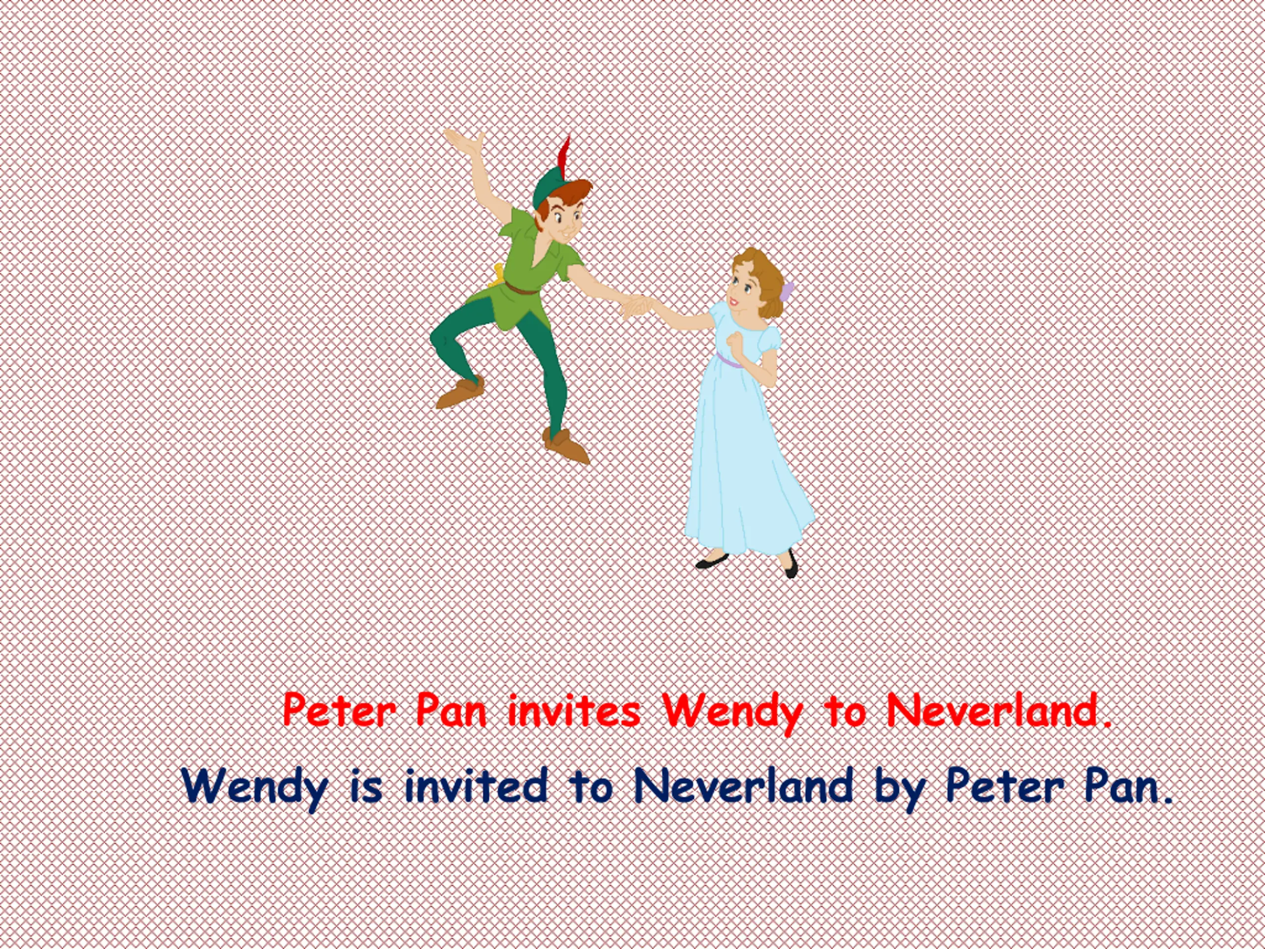 Peter Pan invites Wendy to Neverland. Wendy is invited to Neverland by Peter Pan.