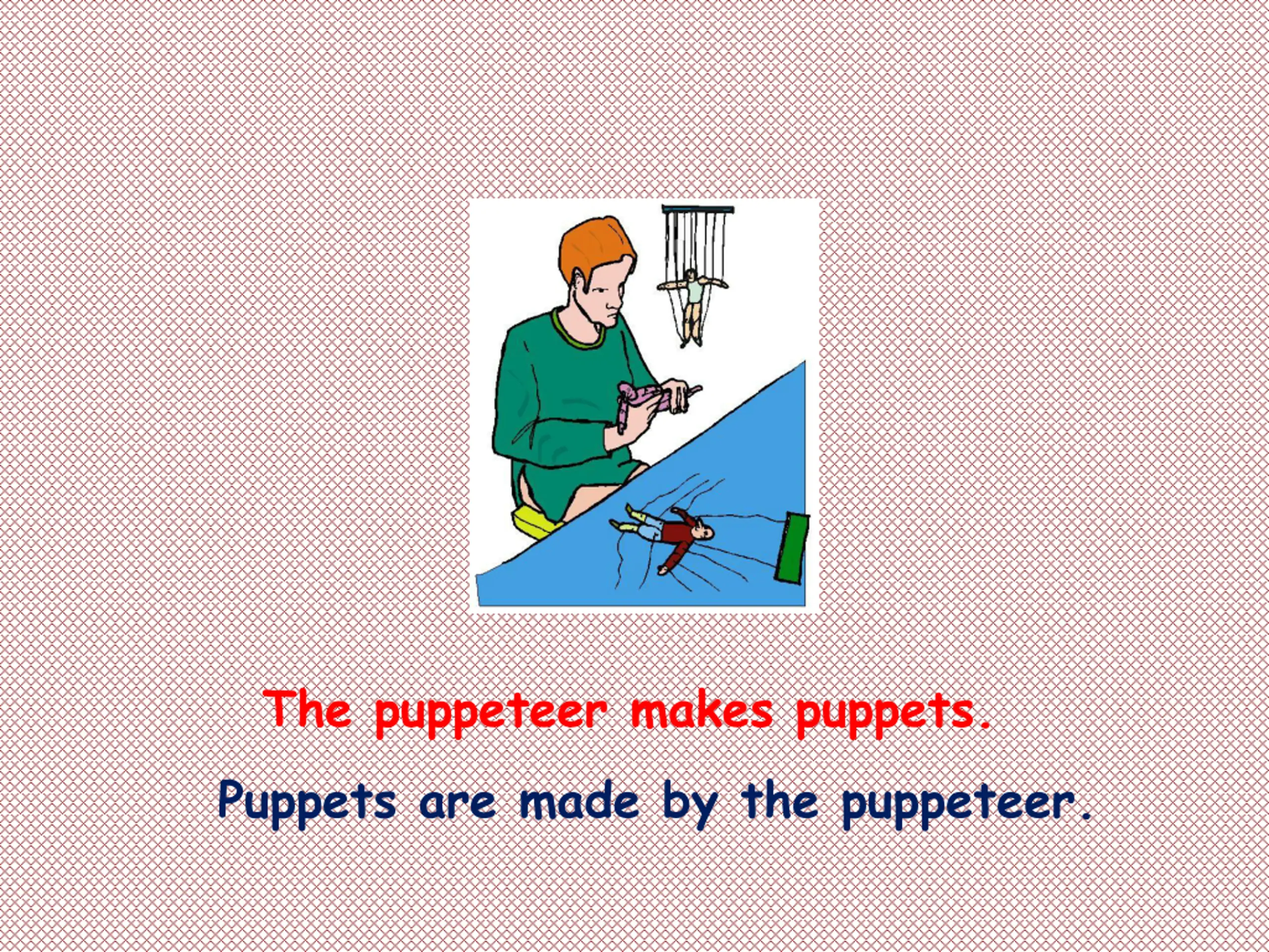 The puppeteer makes puppets. Puppets are made by the puppeteer.