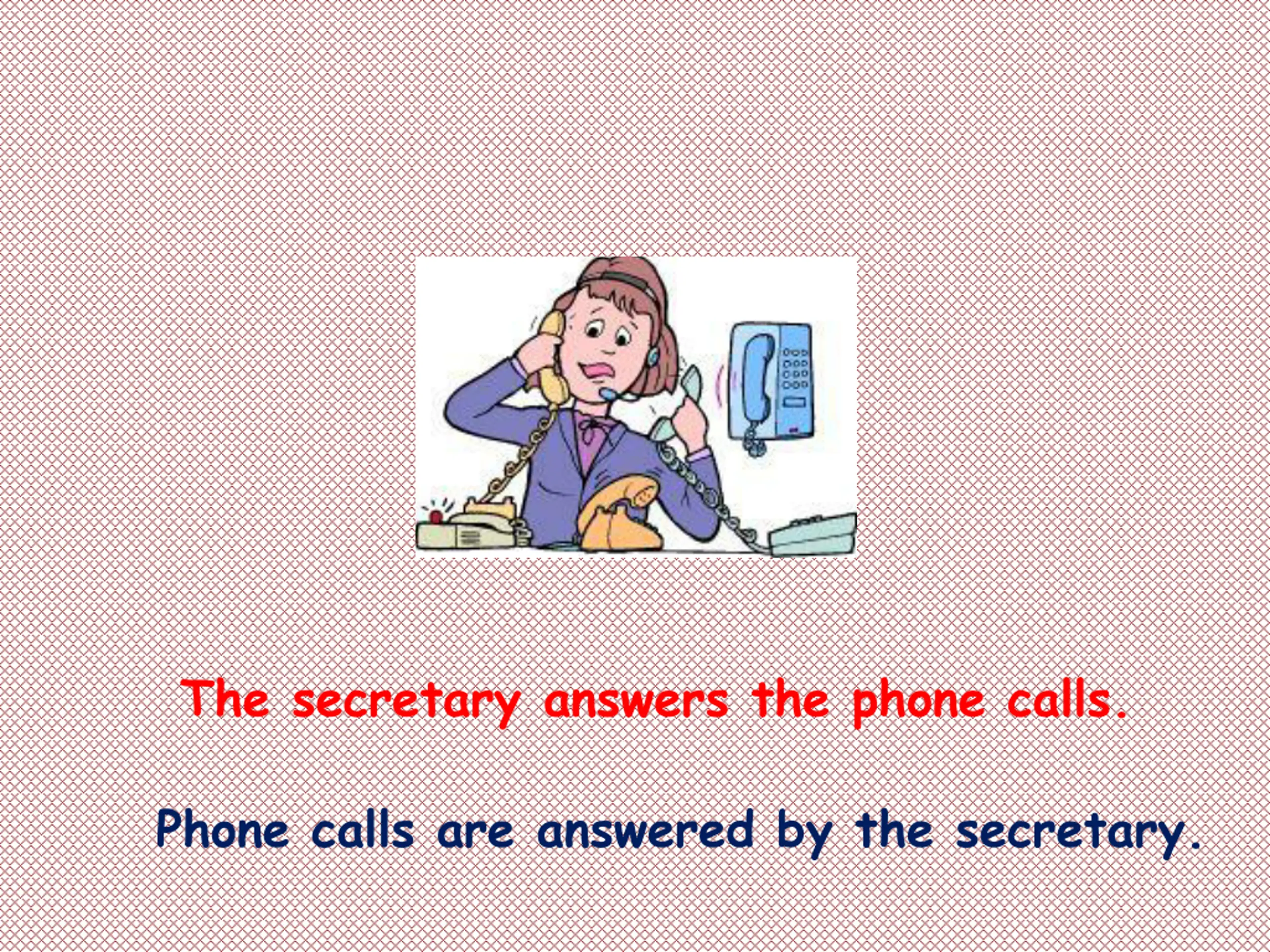 The secretary answers the phone calls. Phone calls are answered by the secretary.