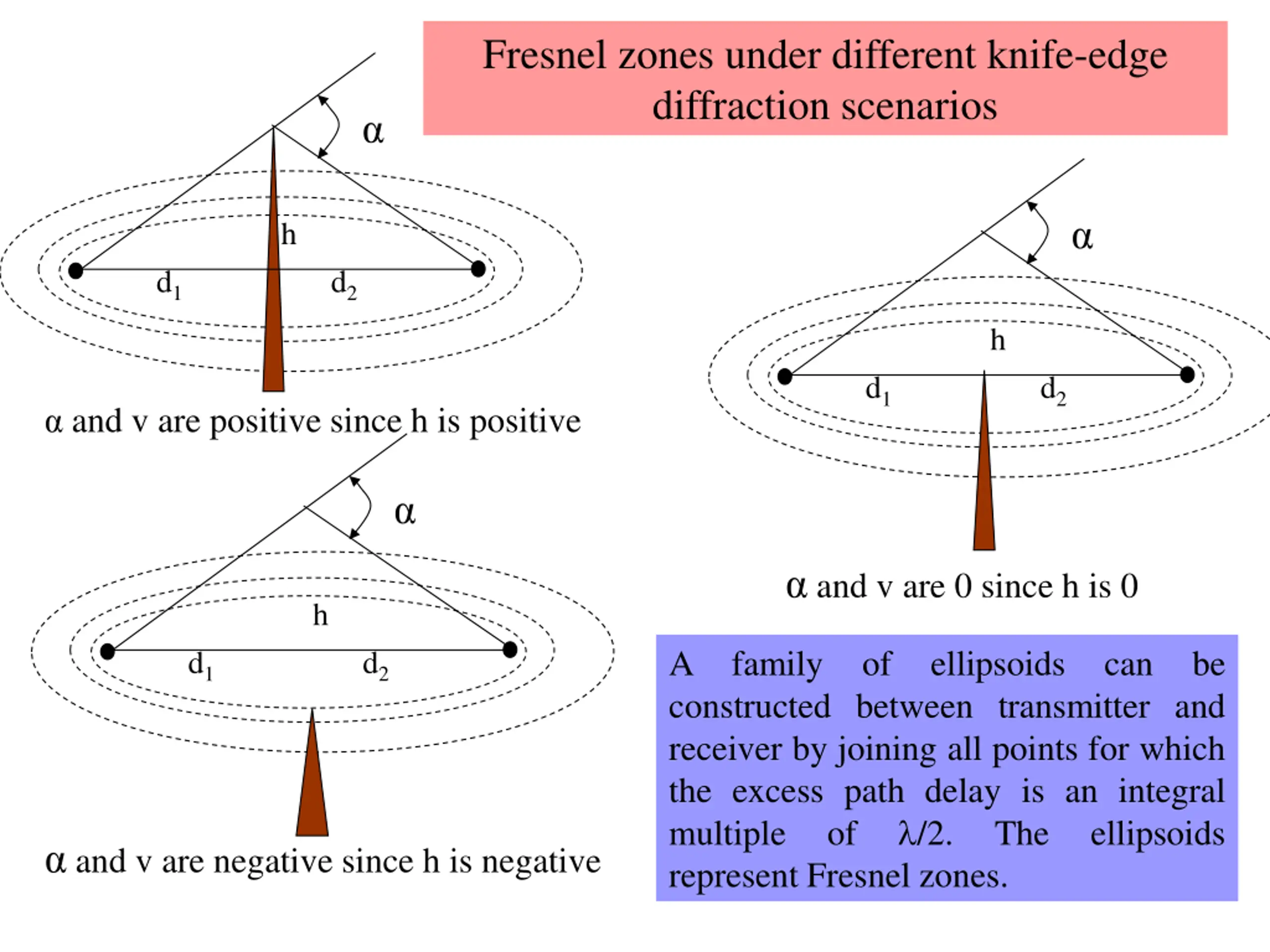 The electric field strength, Ed of a knife edge diffraction wave is, Where E0 is the free space field strength in the absence of both the ground and the knife edge and F(v) is the complex Fresnel integral. The Fresnel integral F(v) is a function of the Fresnel- Kirchoff diffraction parameter v. 30
