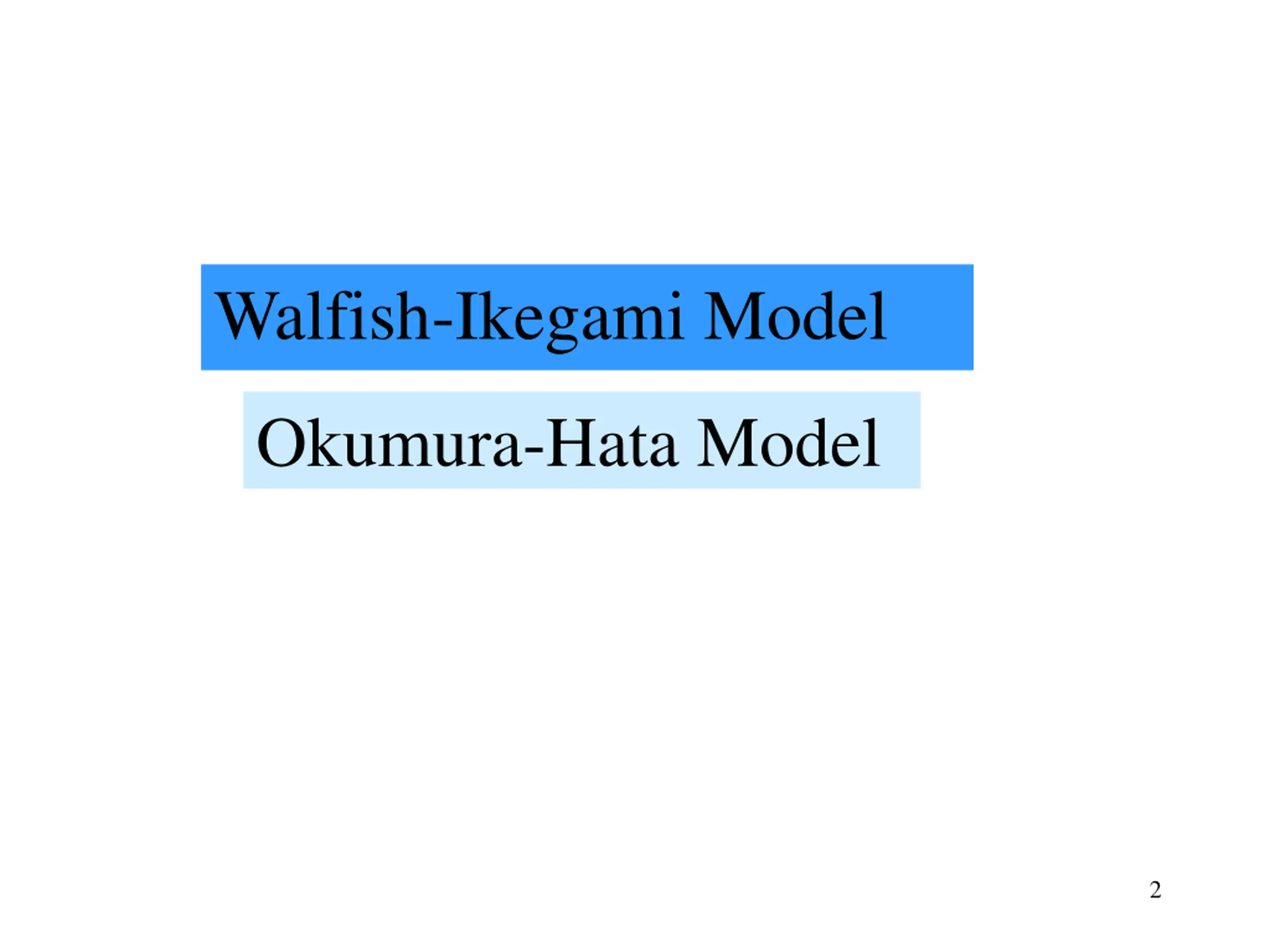 Walfish-Ikegami Model Okumura-Hata Model 2