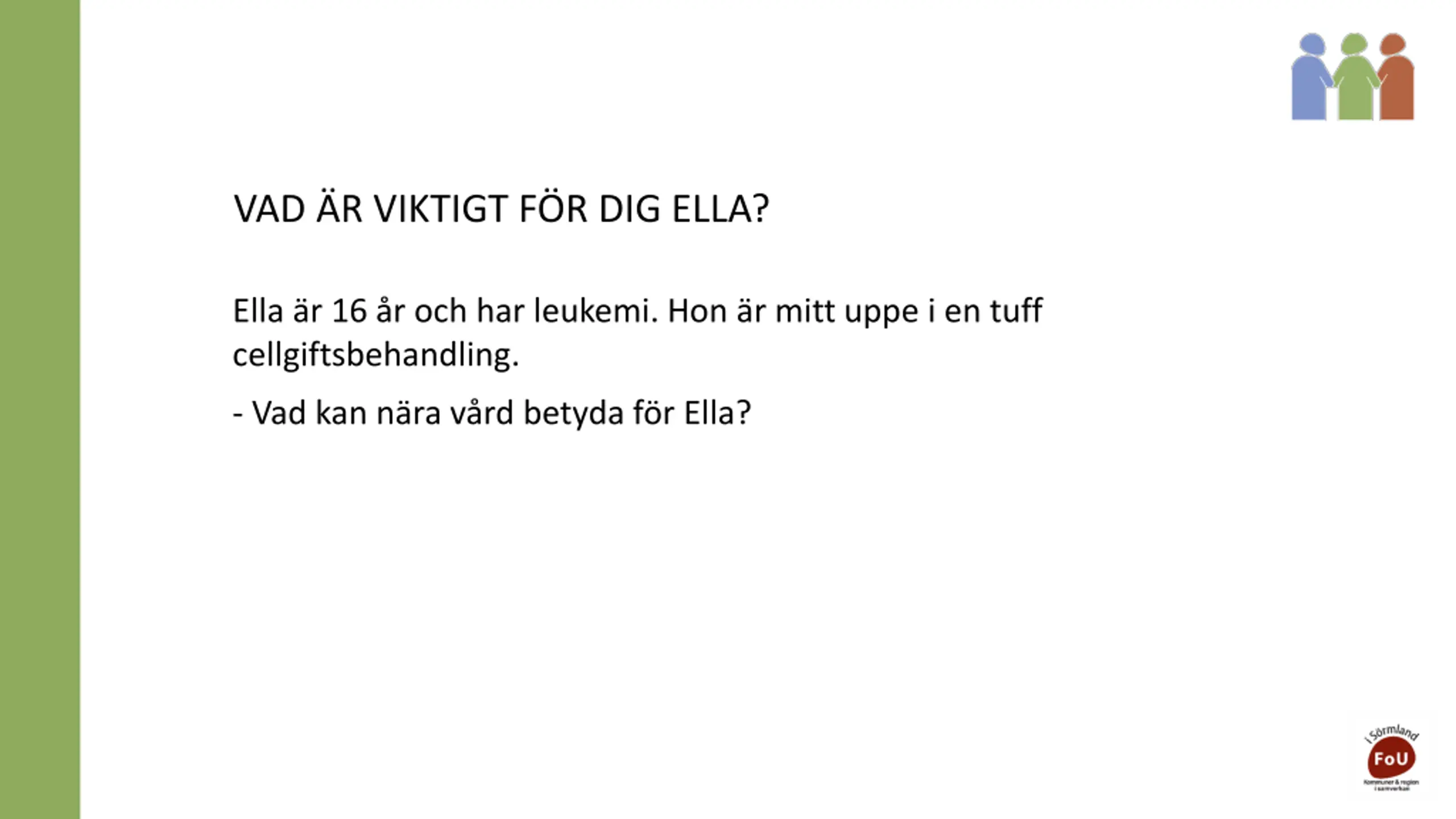 VAD R VIKTIGT FR DIG ELLA? Ella r 16 r och har leukemi. Hon r mitt uppe i en tuff cellgiftsbehandling. - Vad kan n ra v rd betyda f r Ella?
