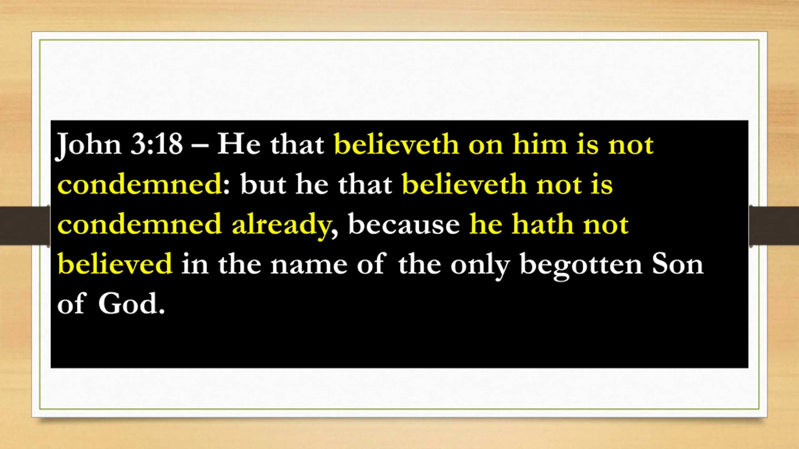 John 3:18 He that believeth on him is not condemned: but he that believeth not is condemned already, because he hath not believed in the name of the only begotten Son of God.