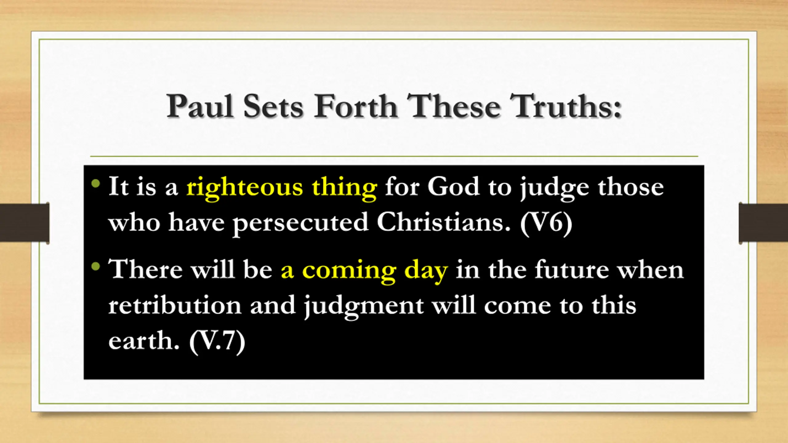 Paul Sets Forth These Truths: It is a righteous thing for God to judge those who have persecuted Christians. (V6) There will be a coming day in the future when retribution and judgment will come to this earth. (V.7)