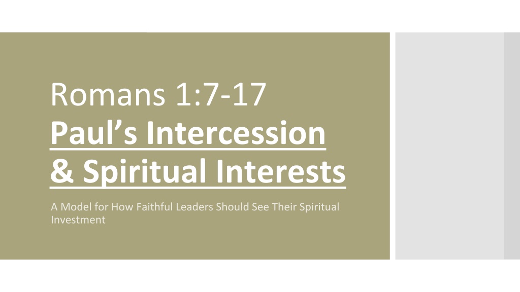 Romans 1:7-17 Paul s Intercession & Spiritual Interests A Model for How Faithful Leaders Should See Their Spiritual Investment