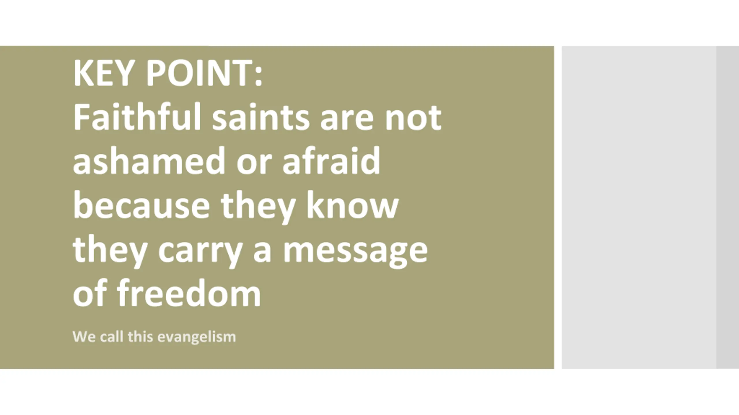 KEY POINT: Faithful saints are not ashamed or afraid because they know they carry a message of freedom We call this evangelism