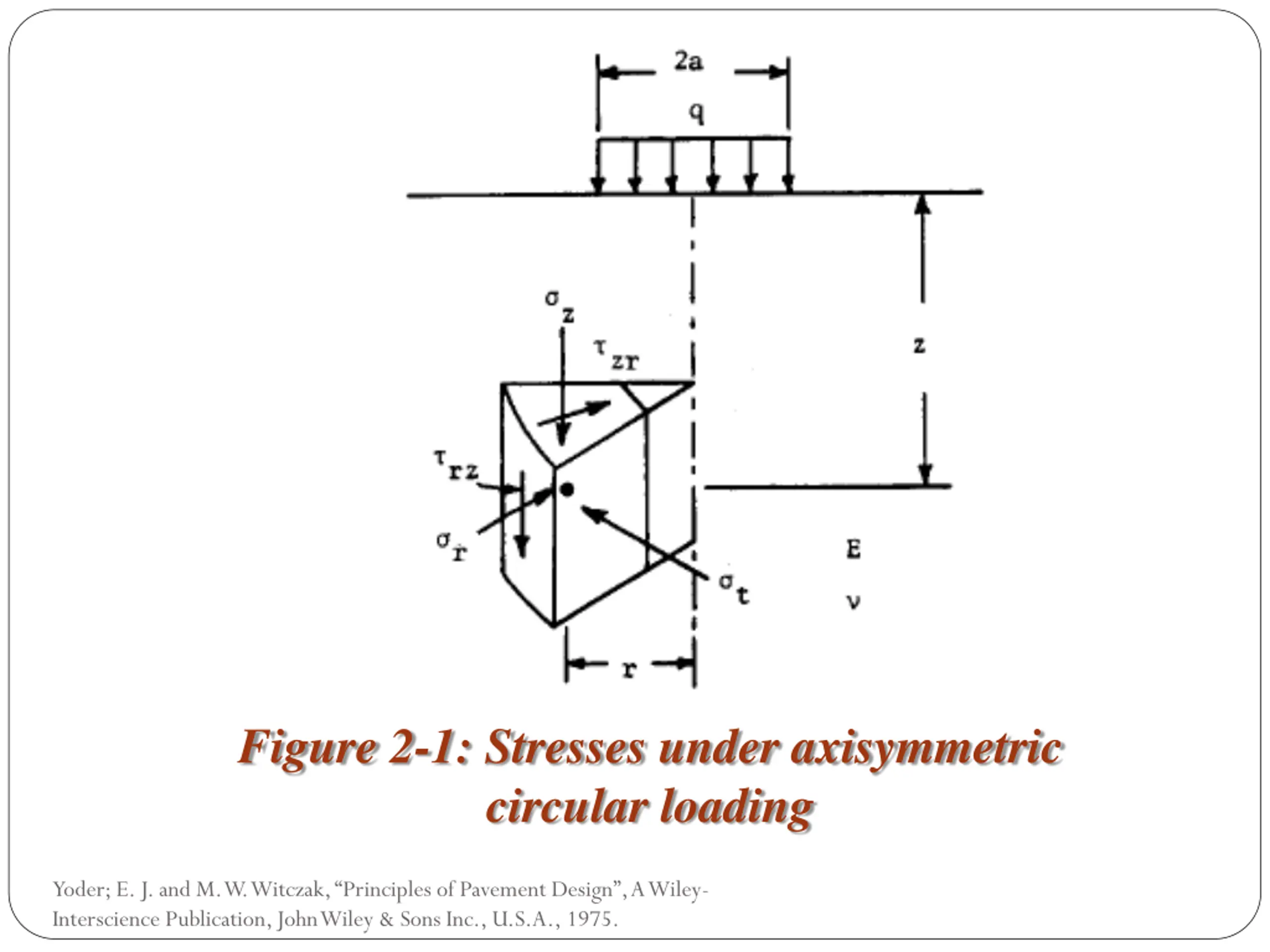 Figure 2-1: Stresses under axisymmetric circular loading Yoder; E. J. and M. W. Witczak, Principles of Pavement Design , A Wiley- Interscience Publication, John Wiley & Sons Inc., U.S.A., 1975.