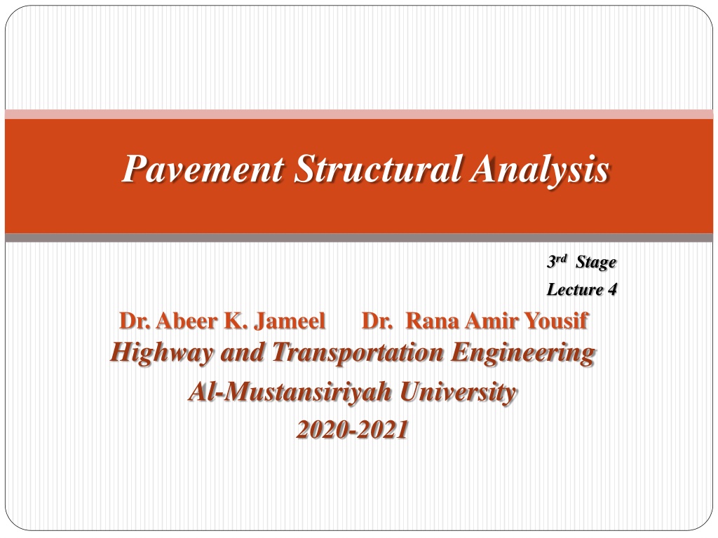 Pavement Structural Analysis 3rdStage Lecture 4 Dr. Abeer K. Jameel Dr. Rana Amir Yousif Highway and Transportation Engineering Al-Mustansiriyah University 2020-2021
