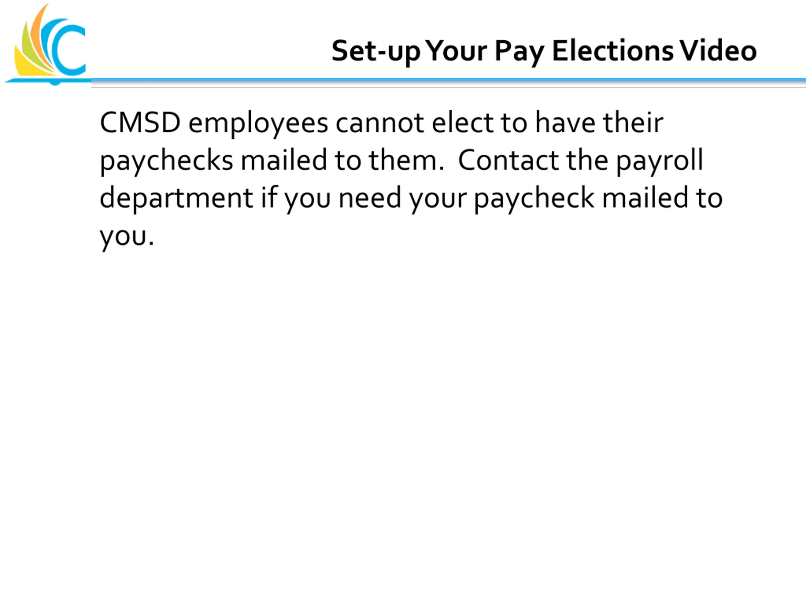 Set-up Your Pay Elections Video CMSD employees cannot elect to have their paychecks mailed to them. Contact the payroll department if you need your paycheck mailed to you. Great Teachers Great Leaders Great Schools