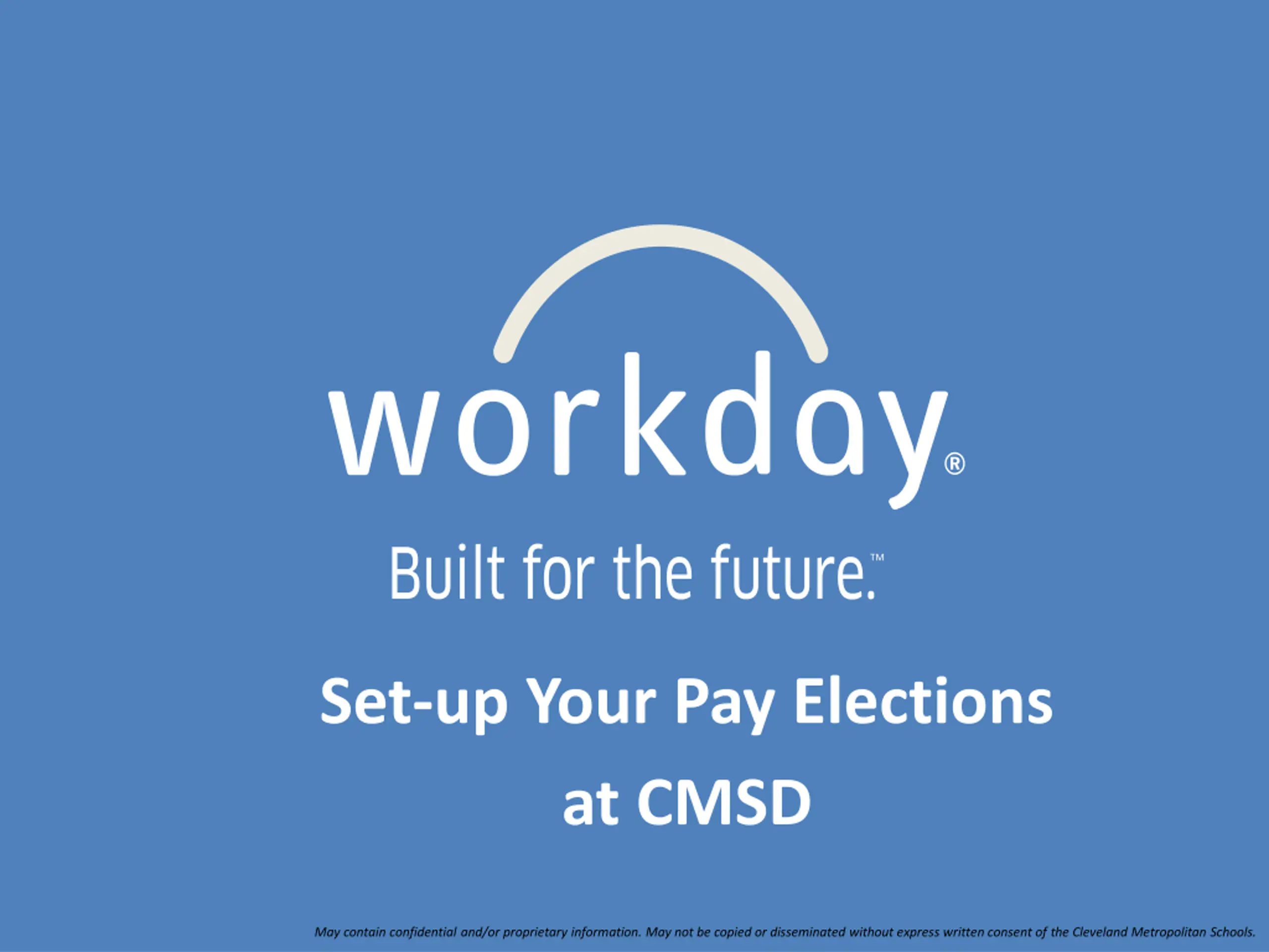 TM Set-up Your Pay Elections at CMSD May contain confidential and/or proprietary information. May not be copied or disseminated without express written consent of the Cleveland Metropolitan Schools.