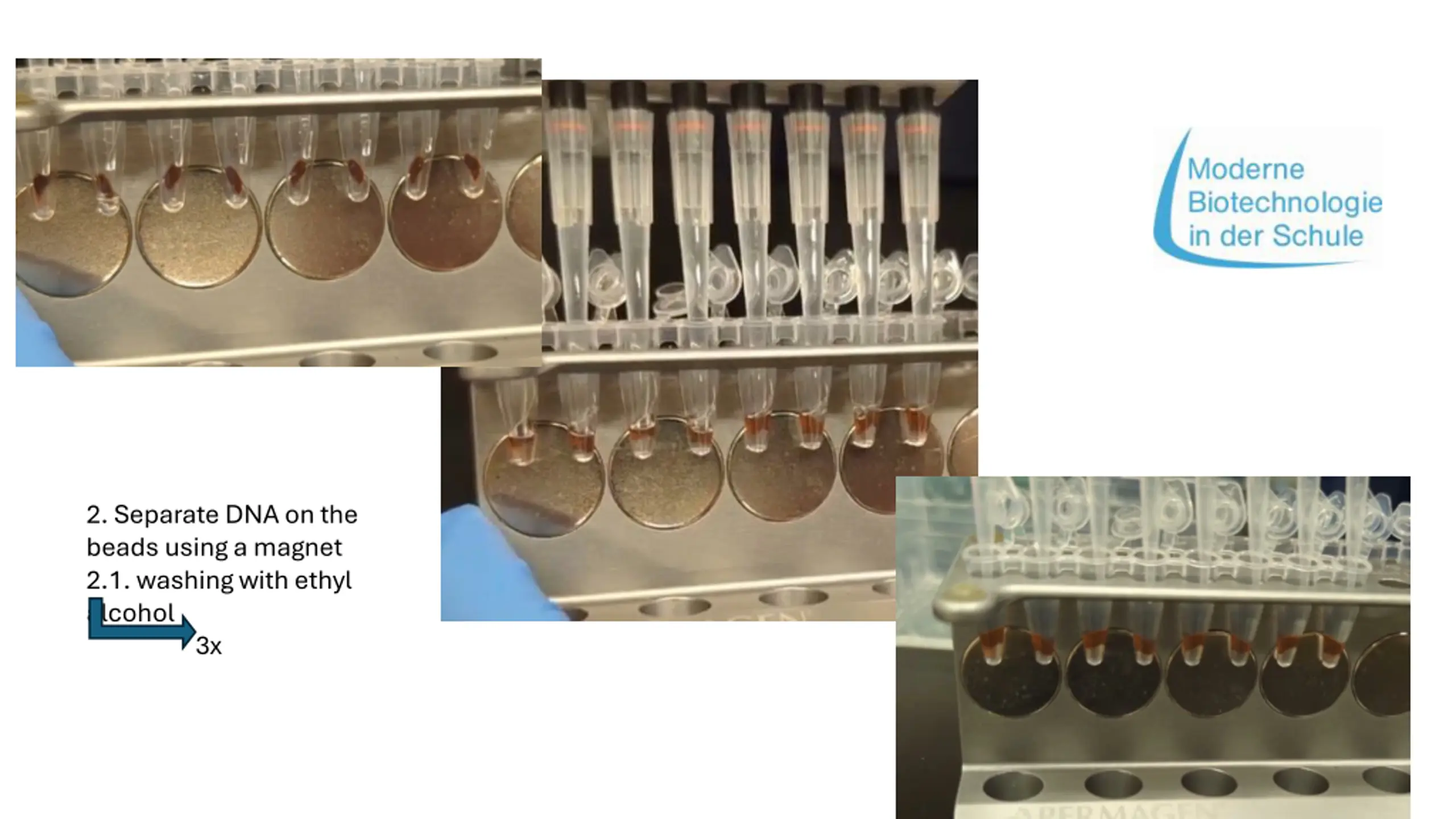 2. Separate DNA on the beads using a magnet 2.1. washing with ethyl alcohol 3x