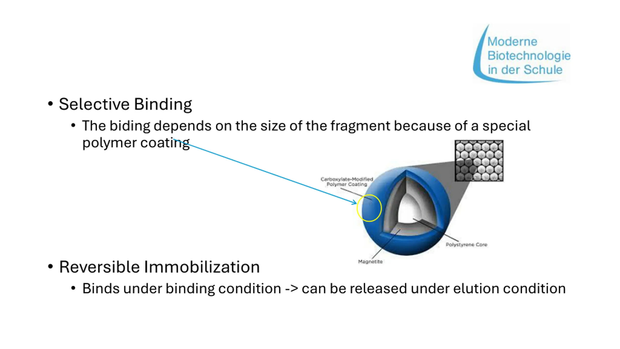 Selective Binding The biding depends on the size of the fragment because of a special polymer coating Reversible Immobilization Binds under binding condition -> can be released under elution condition
