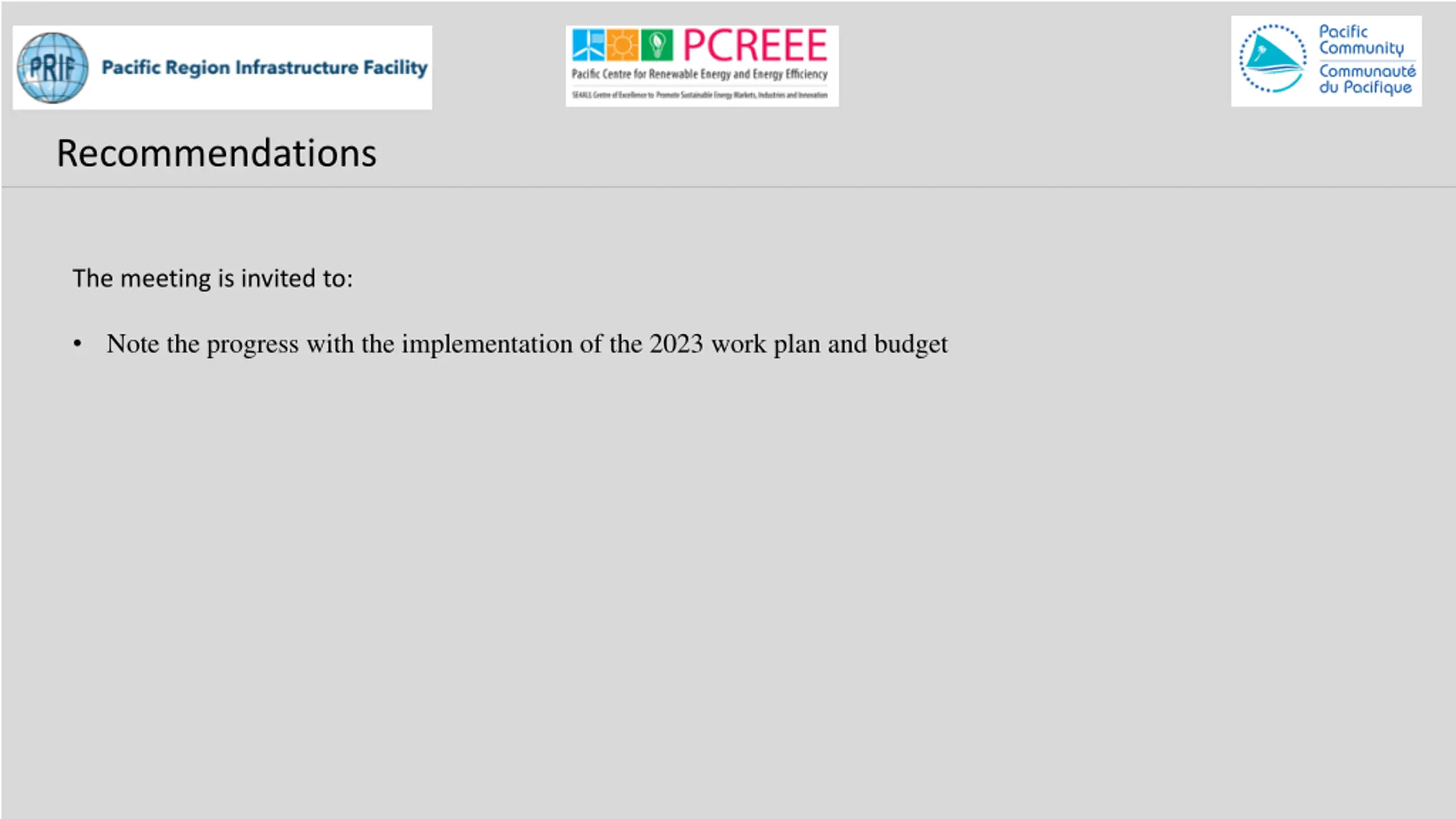 Recommendations The meeting is invited to: Note the progress with the implementation of the 2023 work plan and budget