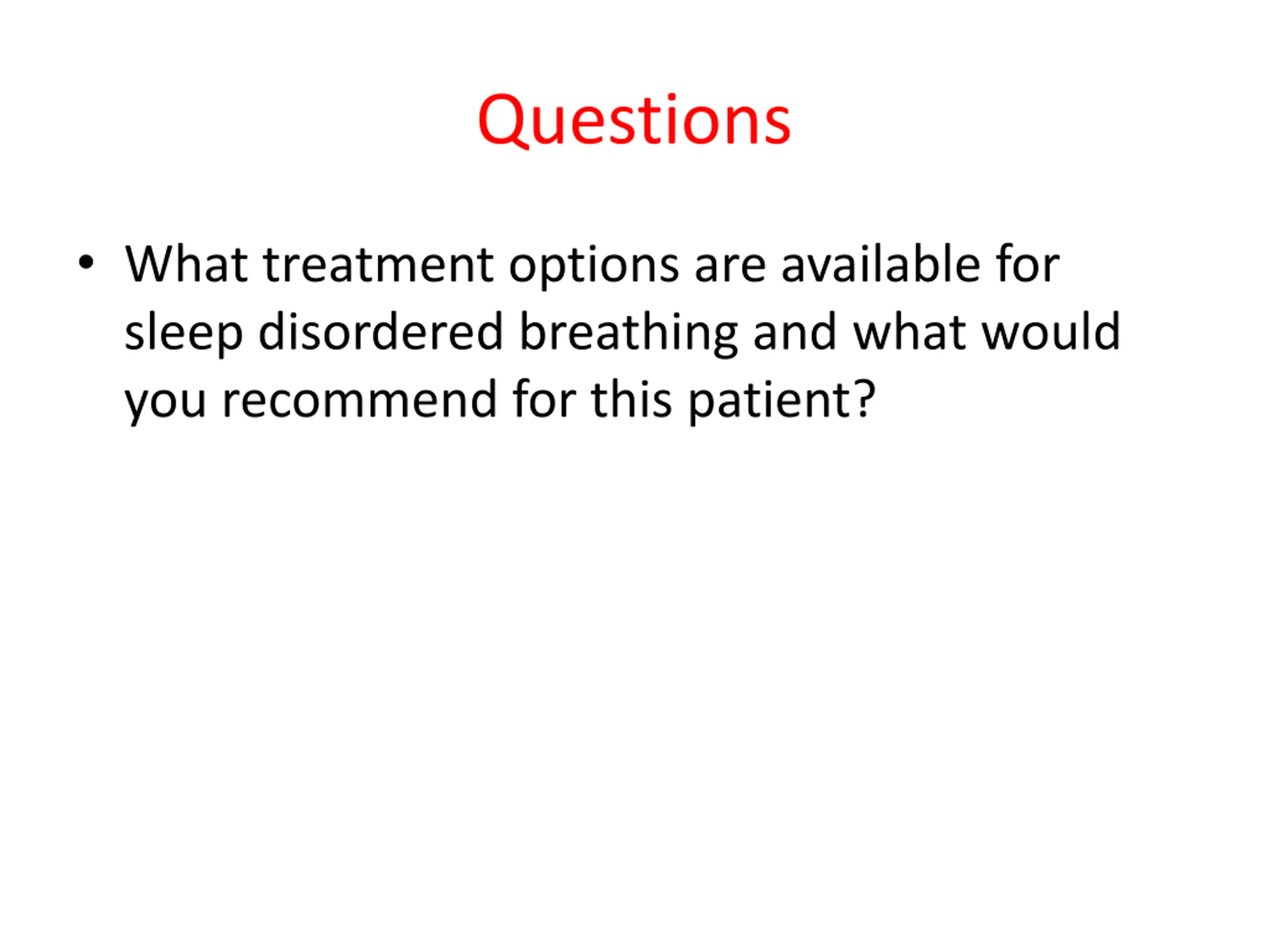 Questions What treatment options are available for sleep disordered breathing and what would you recommend for this patient?