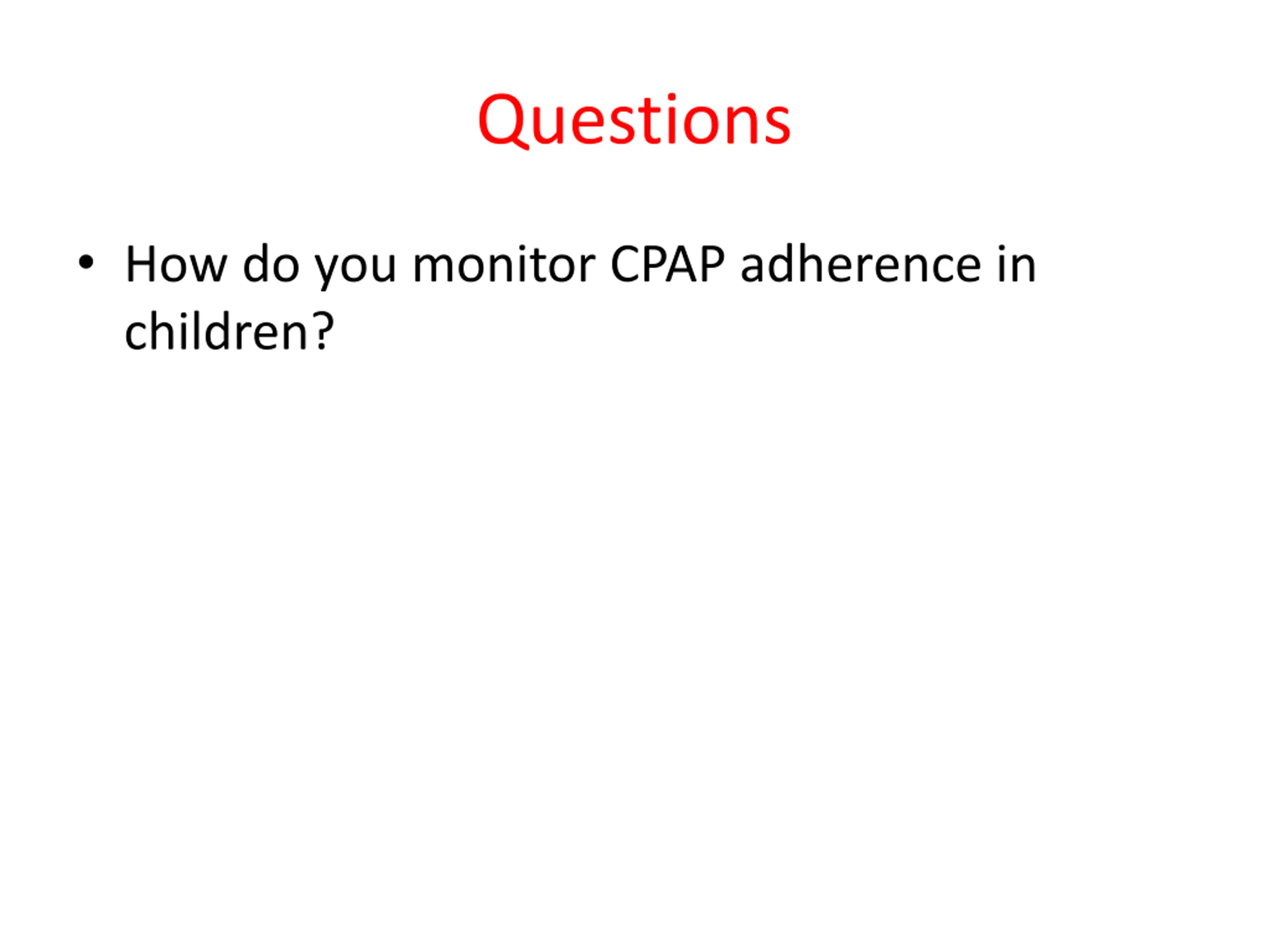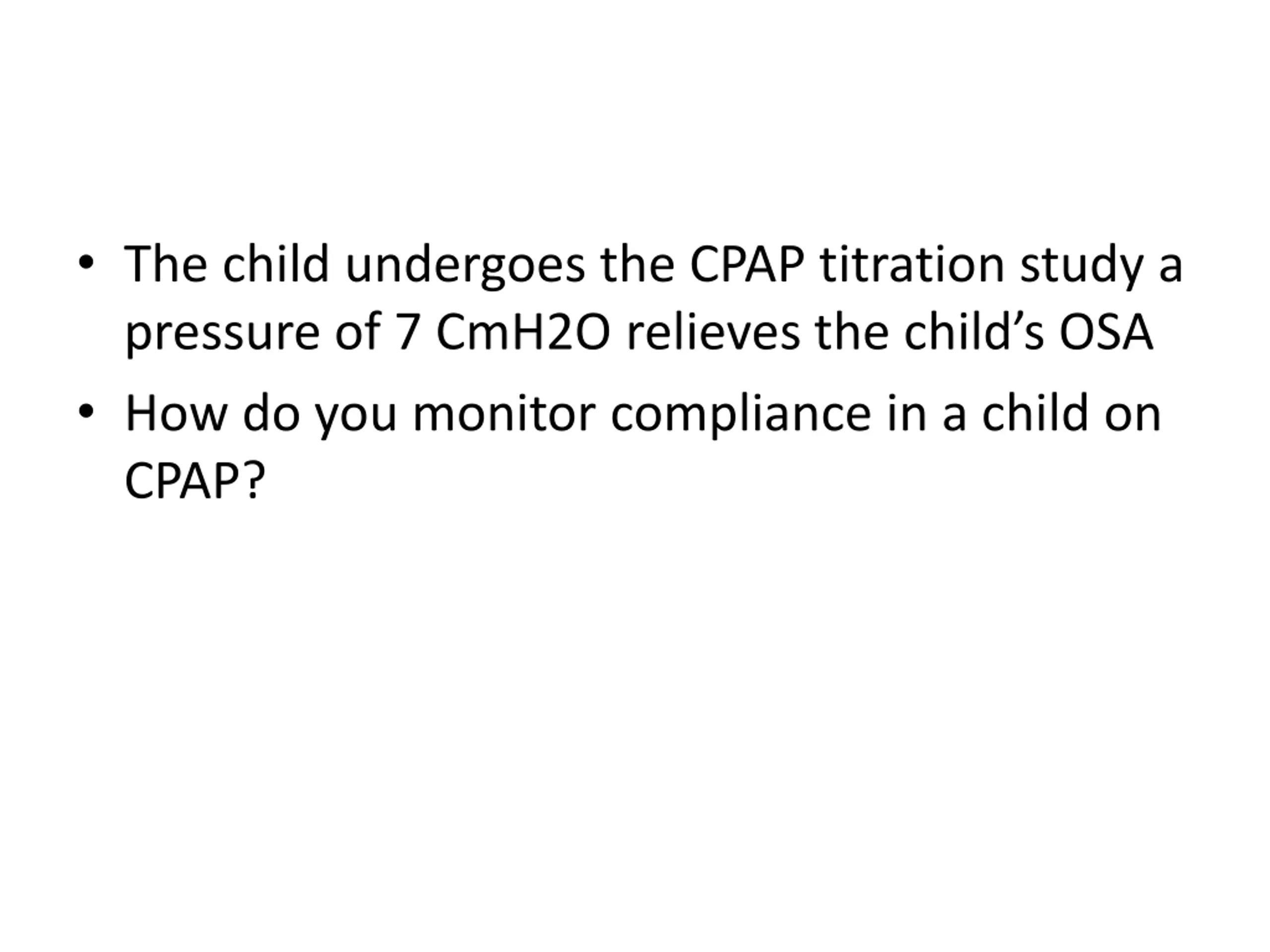 The child undergoes the CPAP titration study a pressure of 7 CmH2O relieves the child s OSA How do you monitor compliance in a child on CPAP?