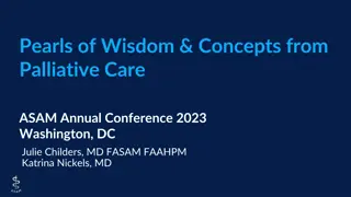 ACP (continued) Allows family to express their wishes and choices surrounding end of life Discuss the issues of resuscitation and care in the case of acute deterioration (DNR) Have a DNR in place with copies for all family members caring for the child Conversation about tissue and organ donation Symptoms management plan need to be put in place> symptom management kit if applicable Discuss preferred place of death