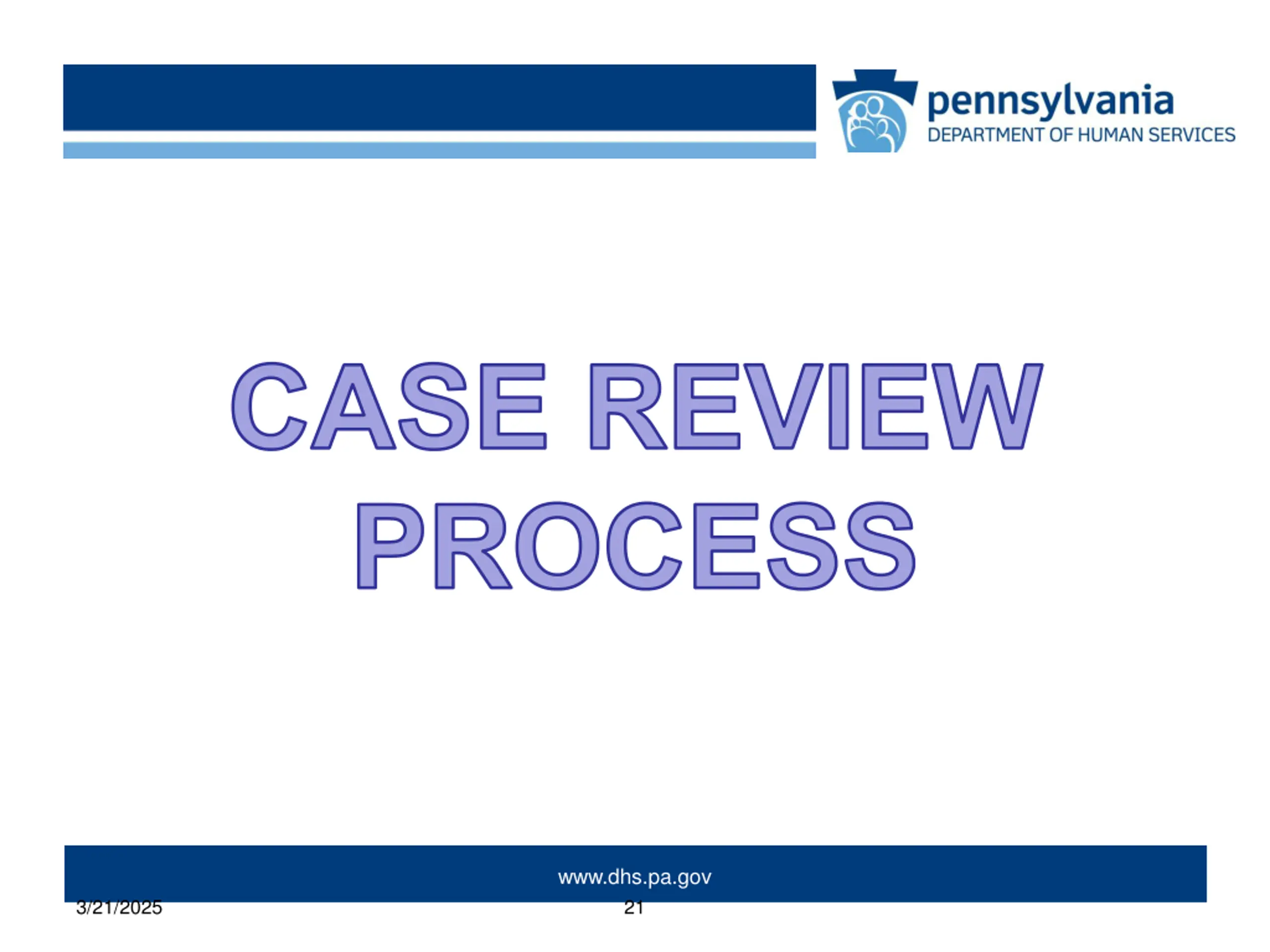 CASE REVIEW PROCESS www.dpw.state.pa.us > > www.dhs.pa.gov 21 3/21/2025