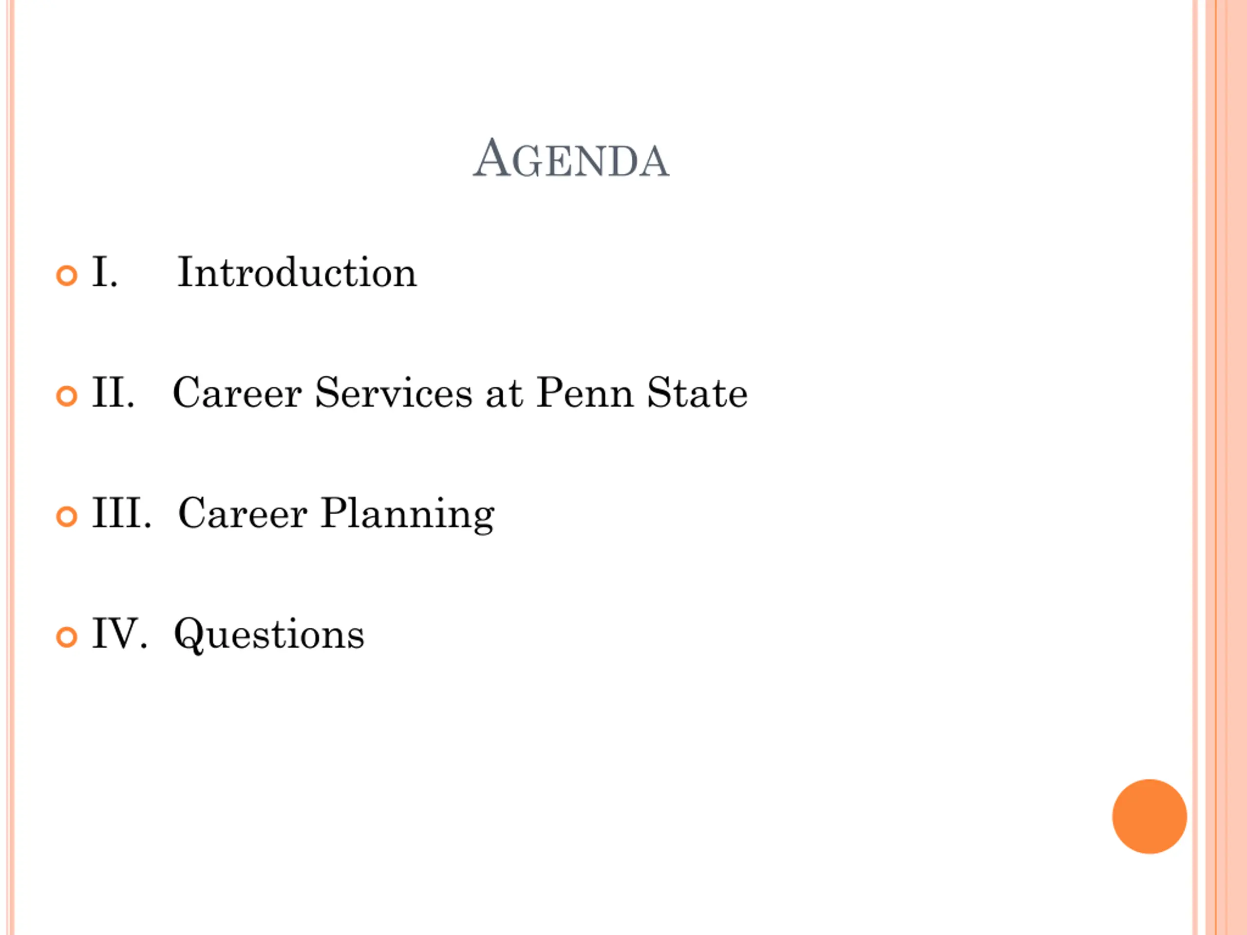 AGENDA I. Introduction II. Career Services at Penn State III. Career Planning IV. Questions