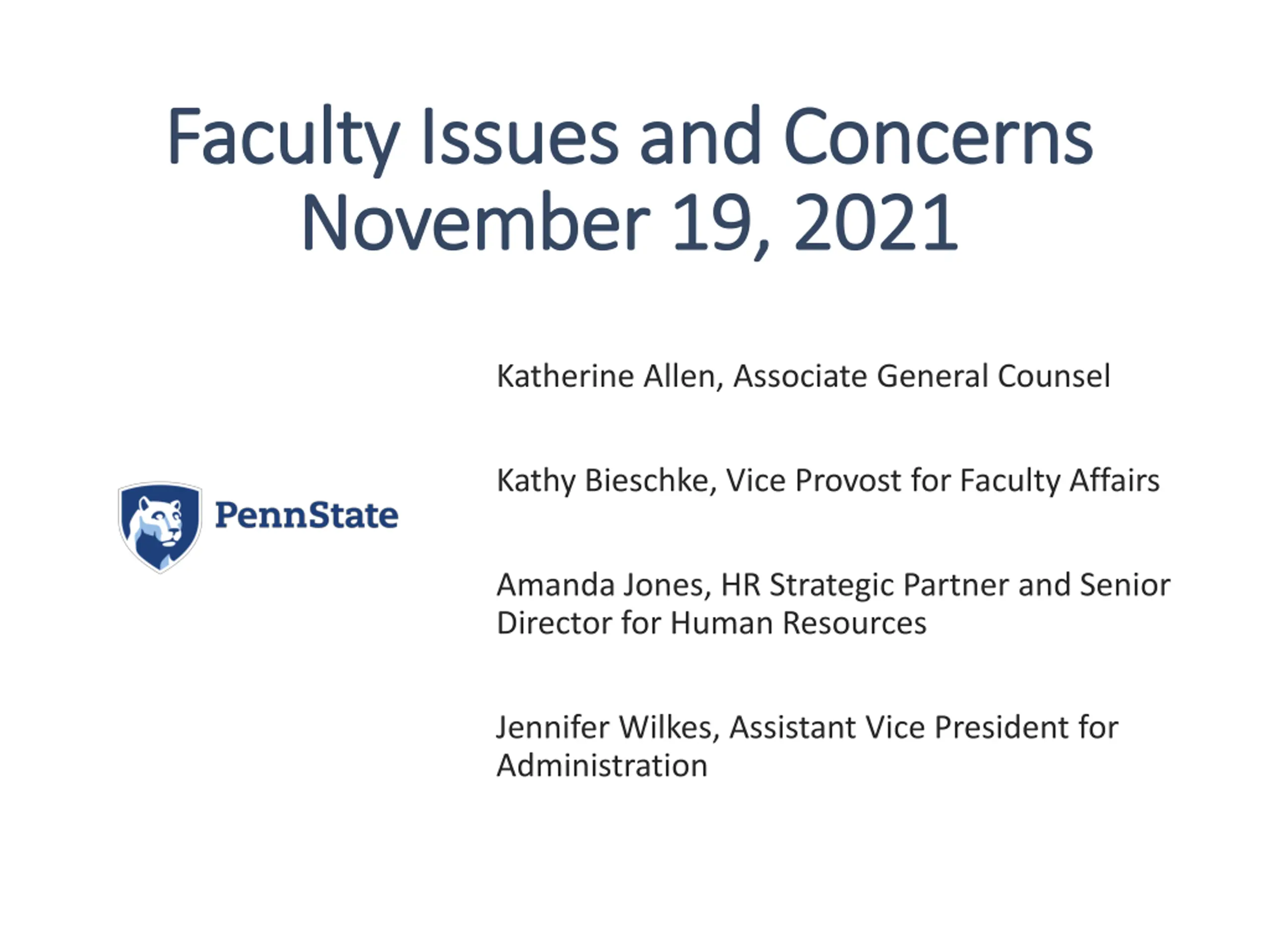 Faculty Issues and Concerns Faculty Issues and Concerns November 19, 2021 November 19, 2021 Katherine Allen, Associate General Counsel Kathy Bieschke, Vice Provost for Faculty Affairs Amanda Jones, HR Strategic Partner and Senior Director for Human Resources Jennifer Wilkes, Assistant Vice President for Administration