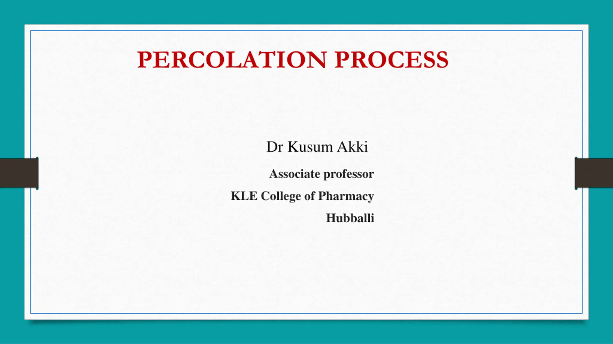 PERCOLATION PROCESS Dr Kusum Akki Associate professor KLE College of Pharmacy Hubballi