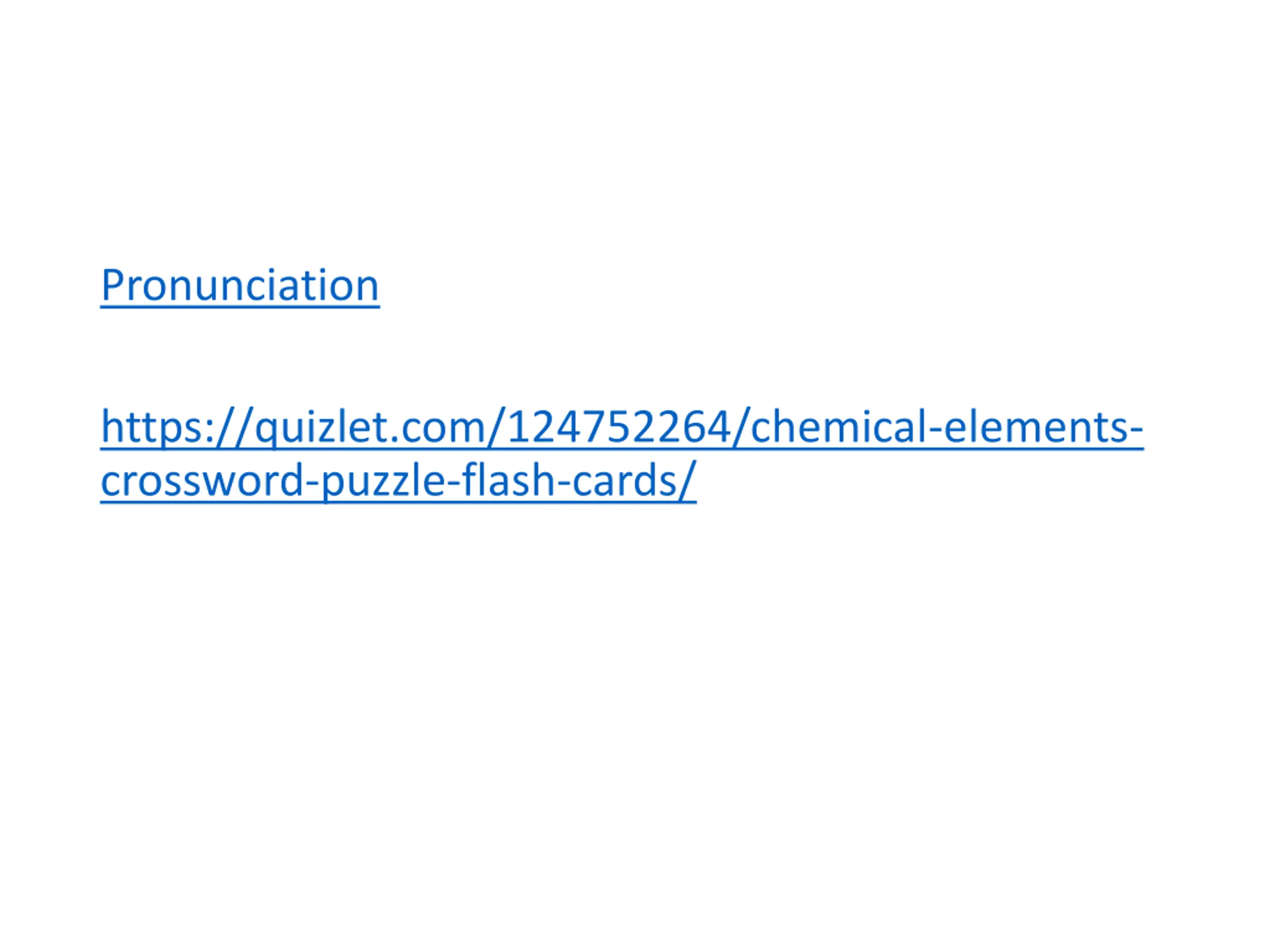 Pronunciation https://quizlet.com/124752264/chemical-elements- crossword-puzzle-flash-cards/