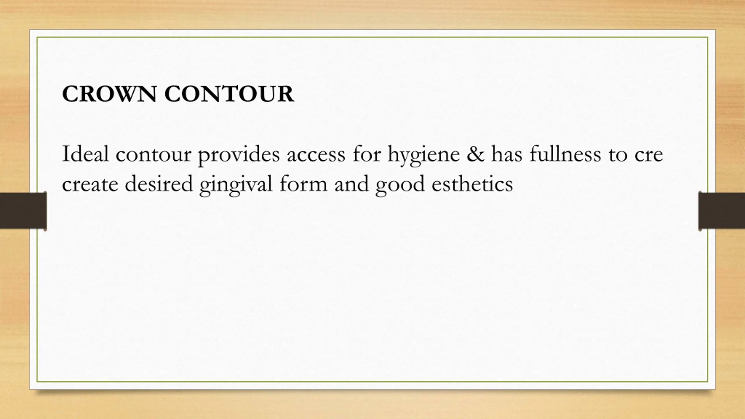 CROWN CONTOUR Ideal contour provides access for hygiene & has fullness to cre create desired gingival form and good esthetics