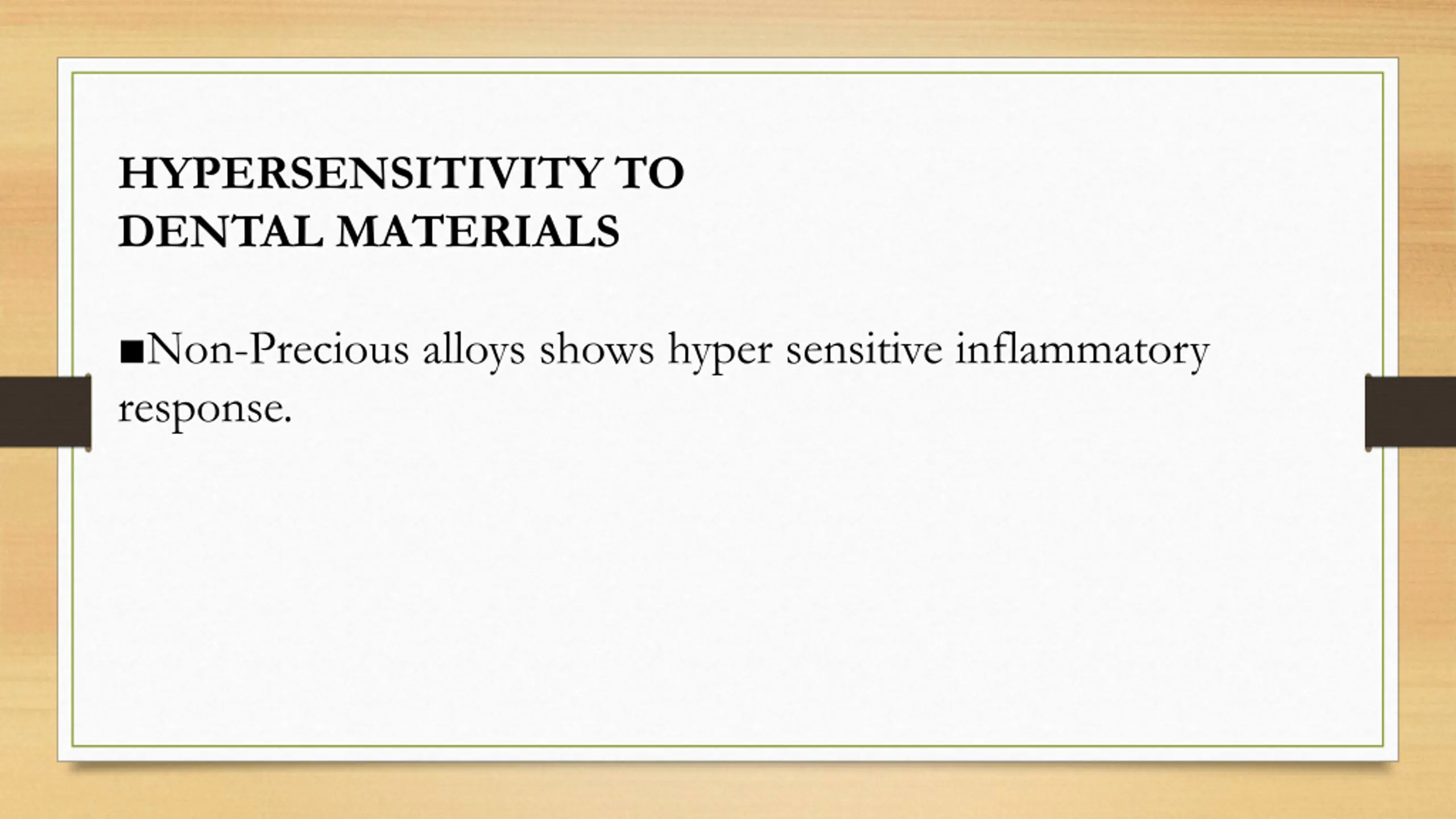 HYPERSENSITIVITY TO DENTAL MATERIALS Non-Precious alloys shows hyper sensitive inflammatory response.
