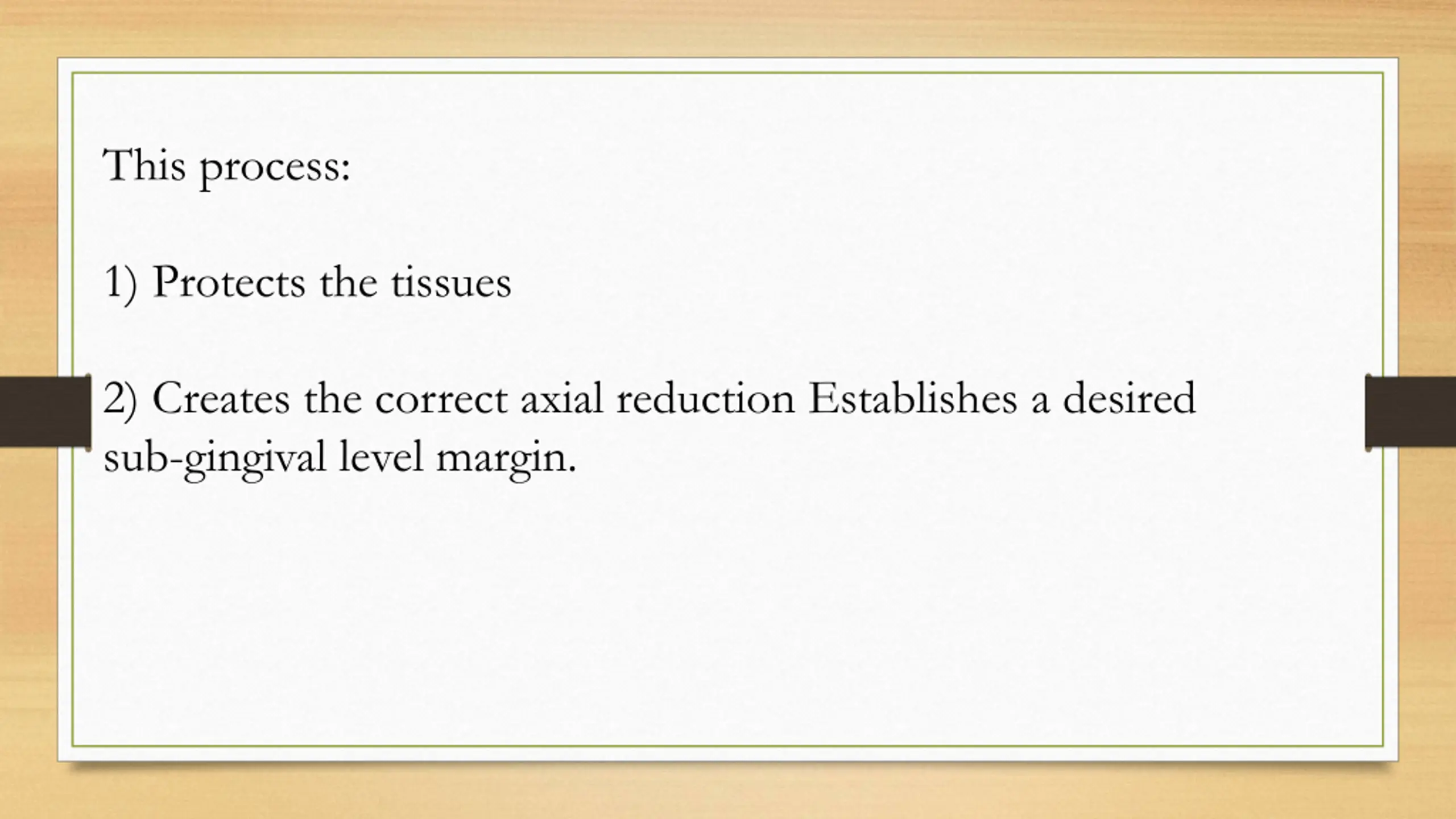 This process: 1) Protects the tissues 2) Creates the correct axial reduction Establishes a desired sub-gingival level margin.