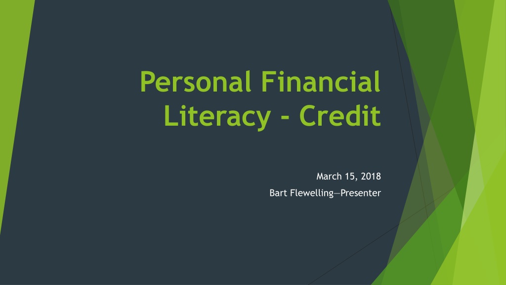 Personal Financial Literacy - Credit March 15, 2018 Bart Flewelling Presenter