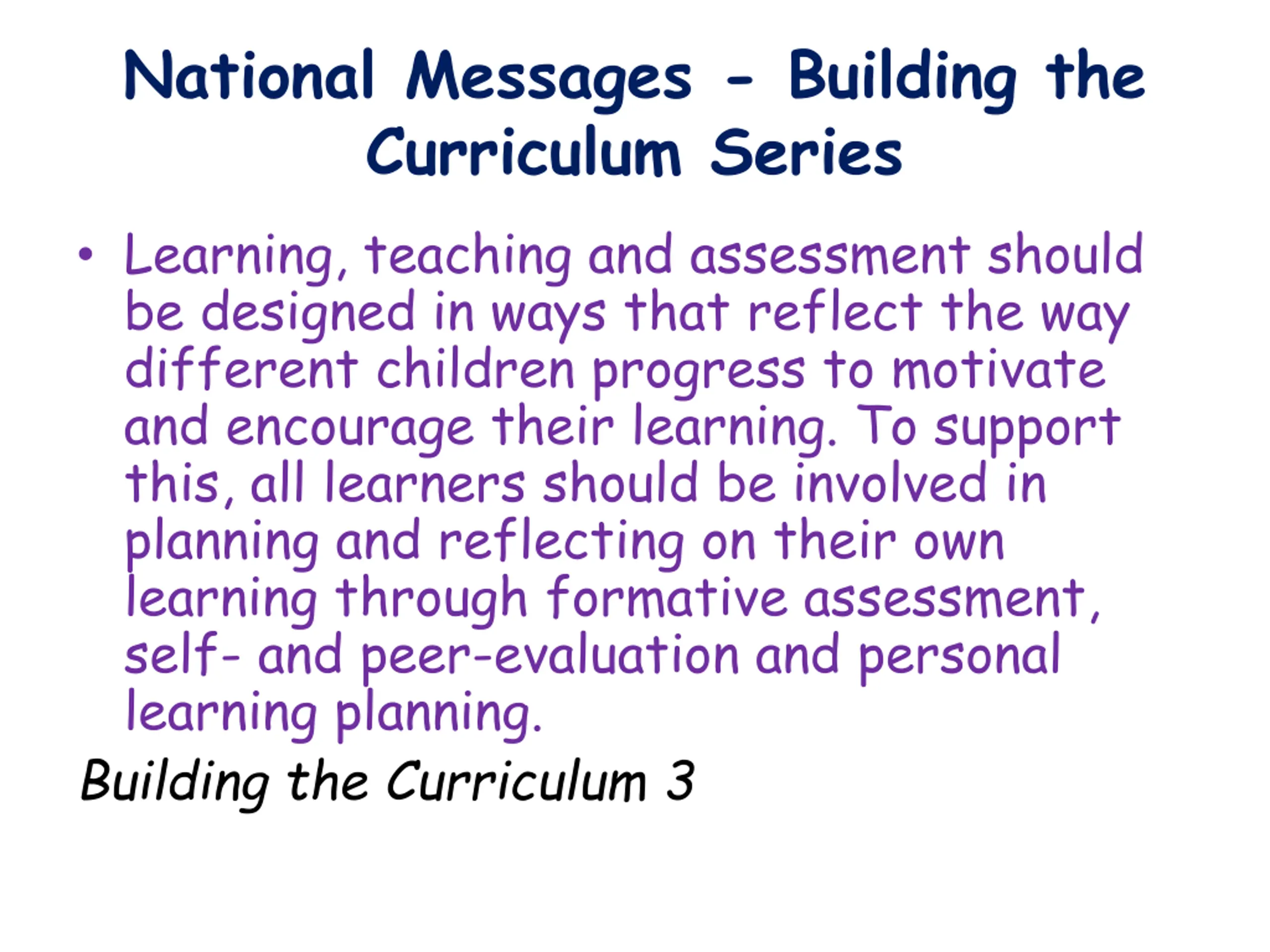 National Messages - Building the Curriculum Series Learning, teaching and assessment should be designed in ways that reflect the way different children progress to motivate and encourage their learning. To support this, all learners should be involved in planning and reflecting on their own learning through formative assessment, self- and peer-evaluation and personal learning planning. Building the Curriculum 3