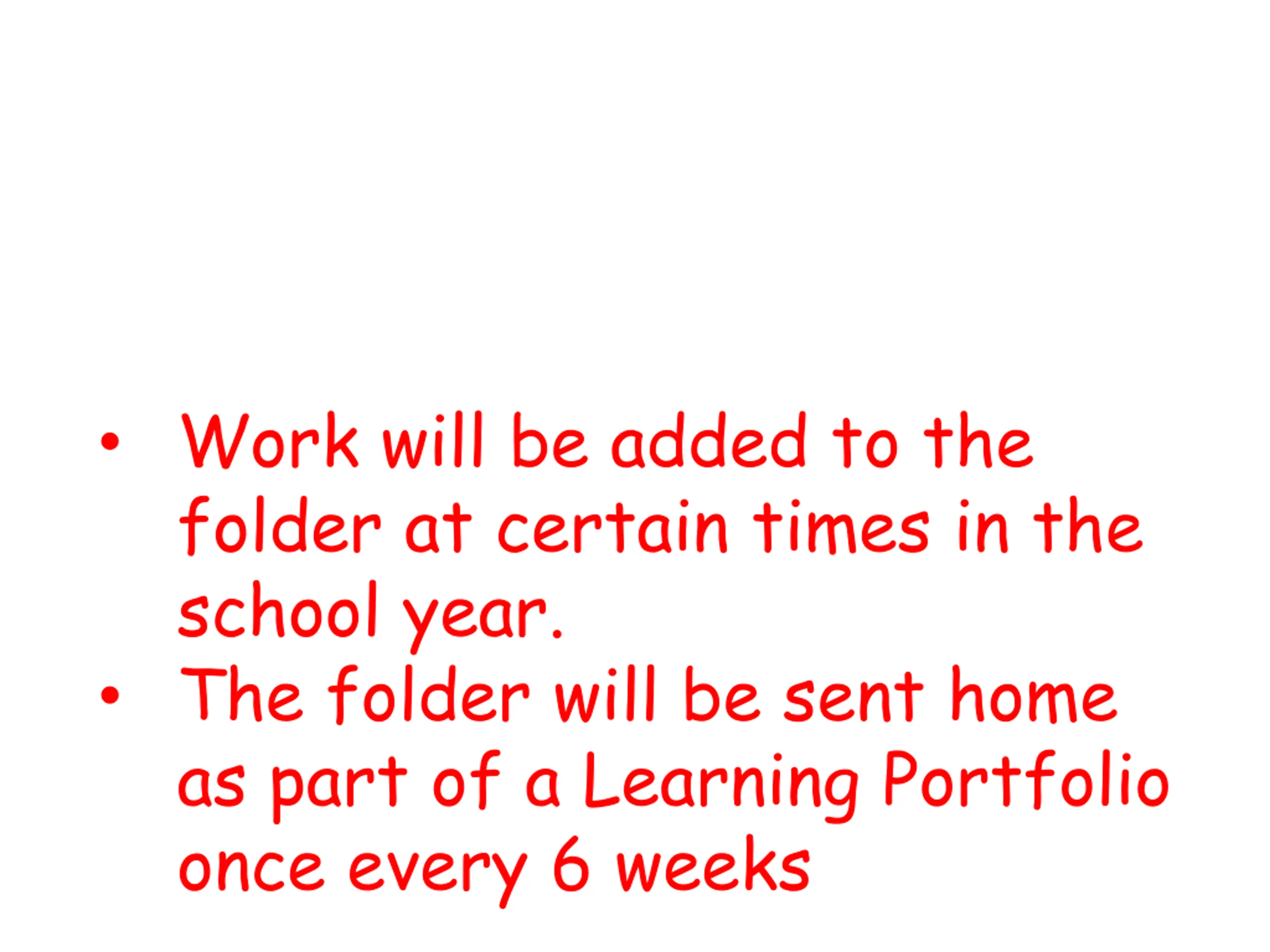 Work will be added to the folder at certain times in the school year. The folder will be sent home as part of a Learning Portfolio once every 6 weeks