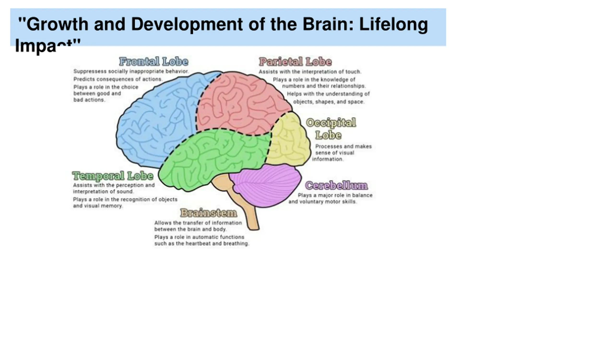"Growth and Development of the Brain: Lifelong Impact" Functions of the Brain: Cognitive Functions: Memory, attention, problem-solving. Emotional Functions: Regulation, empathy. Motor Functions: Coordination, movement.