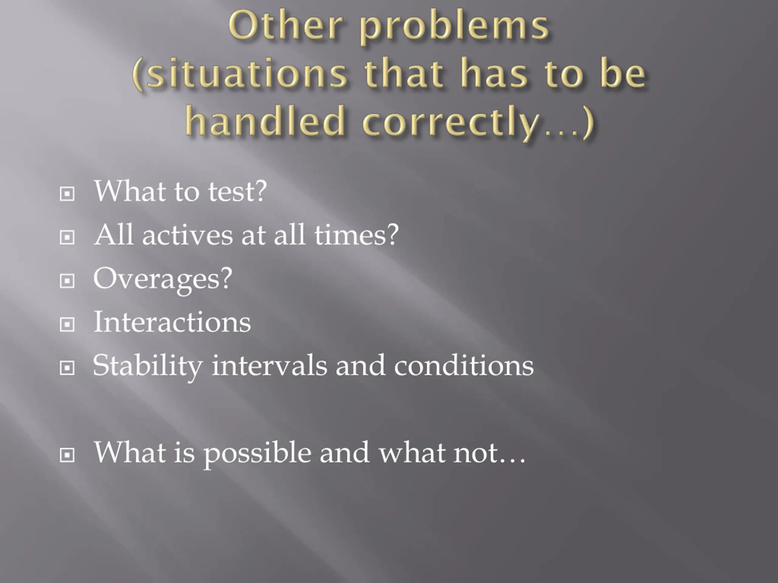 What to test? All actives at all times? Overages? Interactions Stability intervals and conditions What is possible and what not