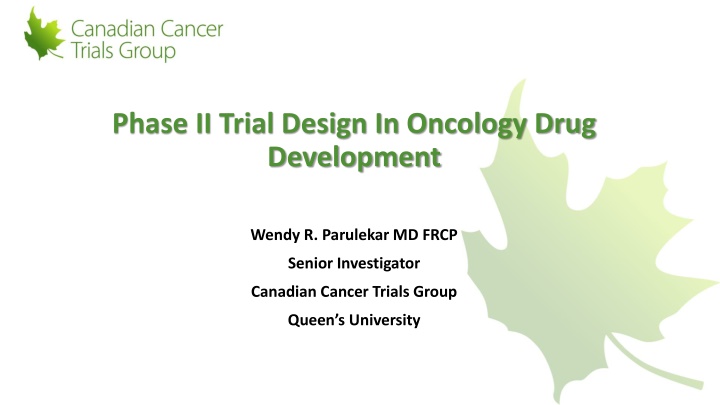 Phase II Trial Design In Oncology Drug Development Wendy R. Parulekar MD FRCP Senior Investigator Canadian Cancer Trials Group Queen s University