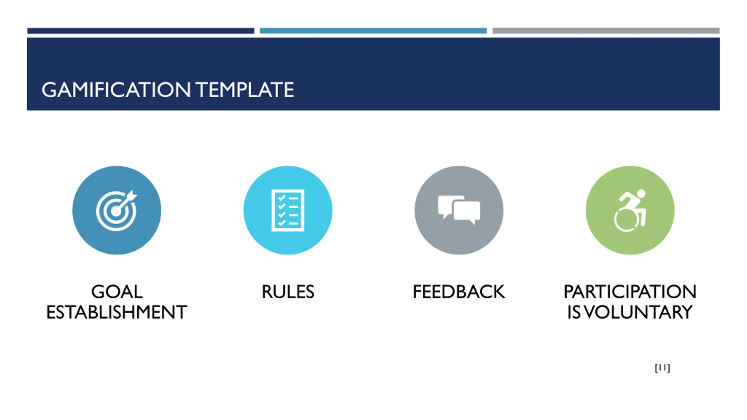 GAMIFICATION TEMPLATE GOAL RULES FEEDBACK PARTICIPATION IS VOLUNTARY ESTABLISHMENT [11]