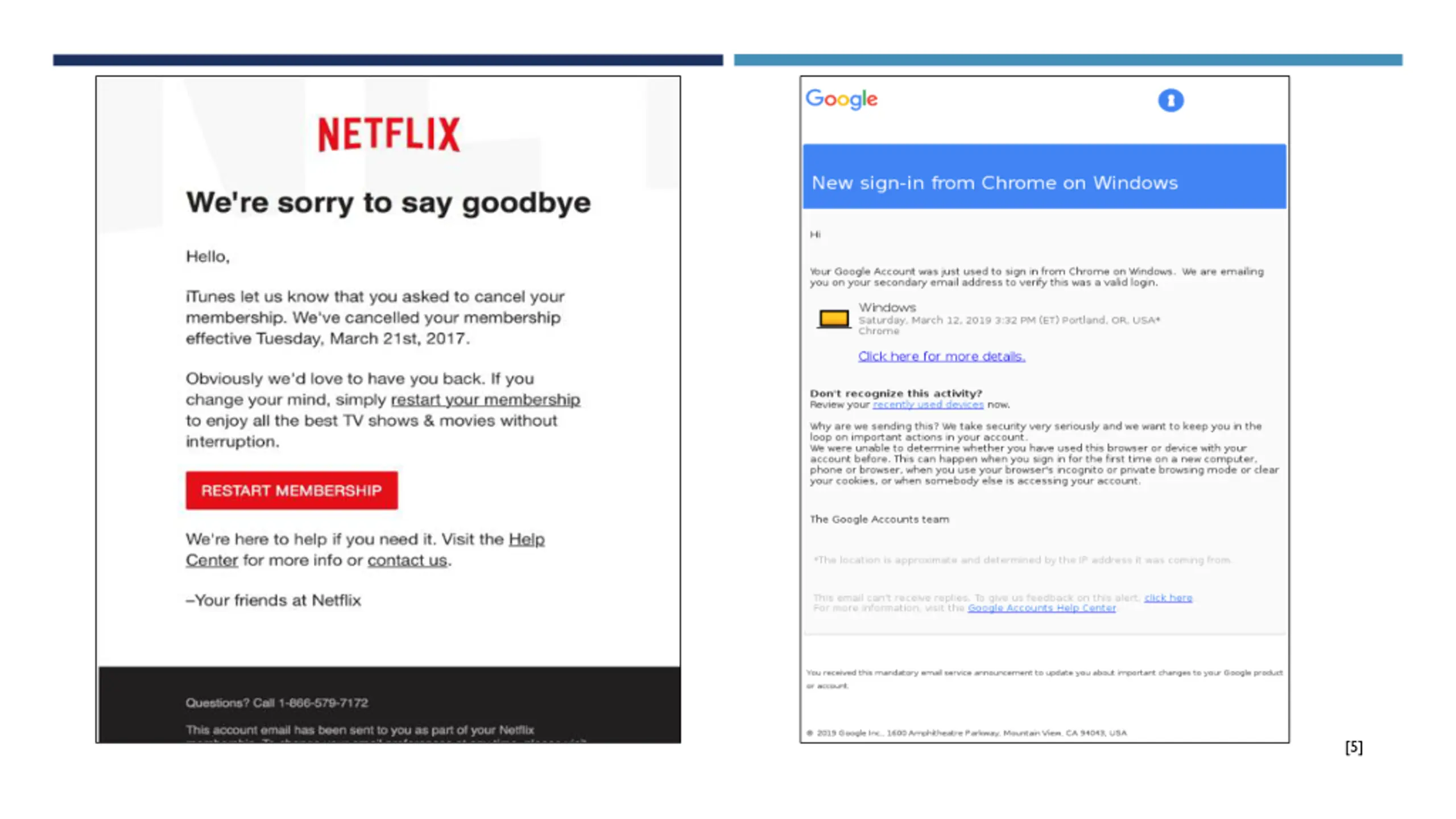 Vishwanath: phishers engineer attacks to take advantage of individuals high in affective commitment by personalizing [emails] and invoking brand familiarity, using fear appeals in the form of threats and warnings, appealing to individuals sense of patriotism [The] emphasis is on peripheral route persuasion where images and symbolic cues distract attention away from detailed and thoughtful cognition. [2] PHISHING