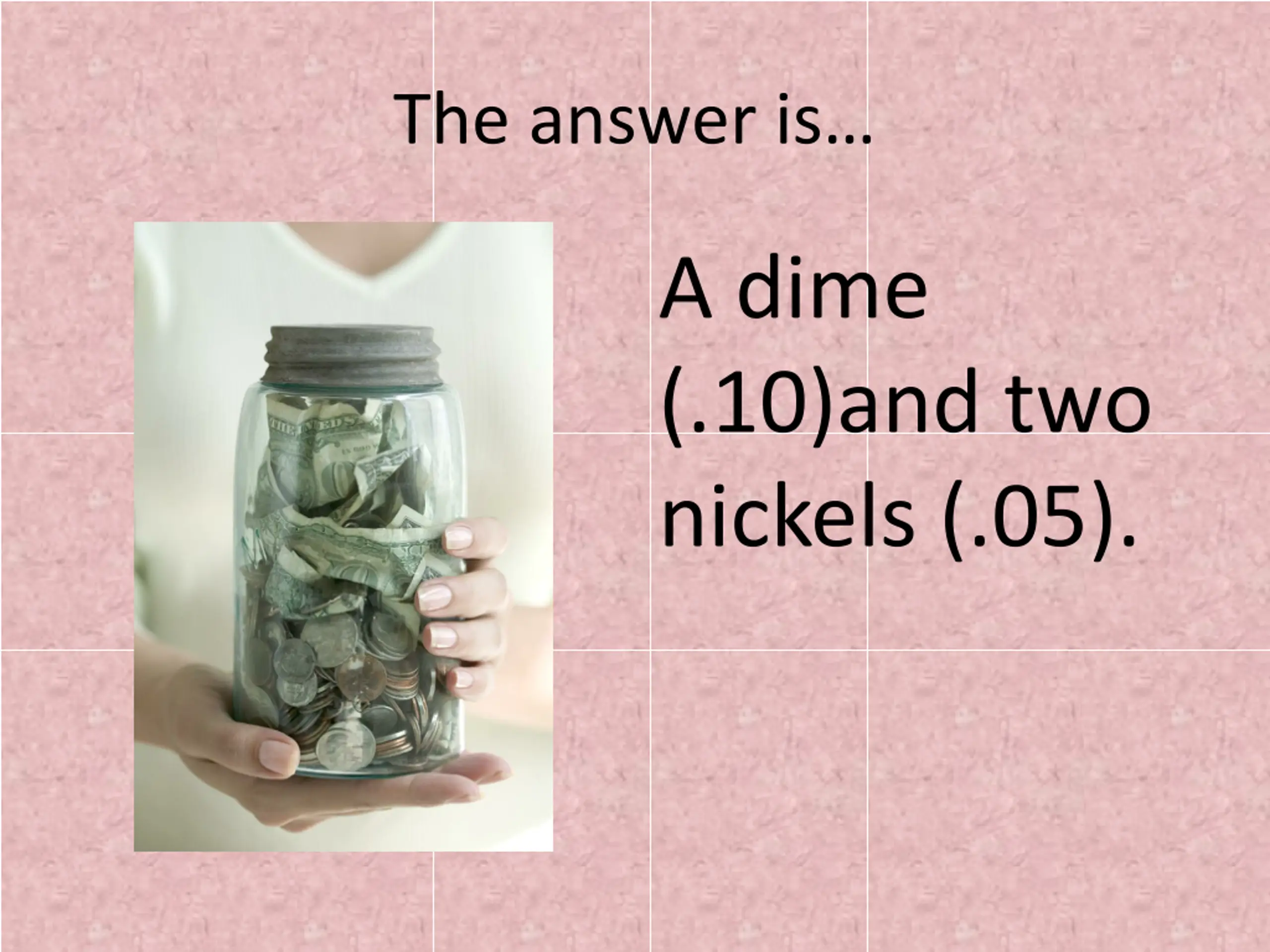 First, solve the riddle What combination of three coins equals 20 cents (.20) if one of the coins is NOT a dime?