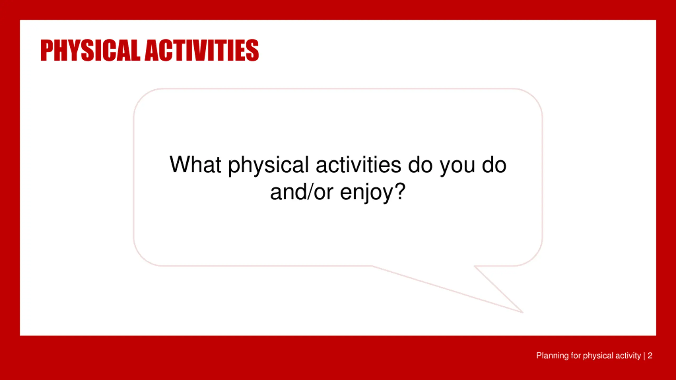 PHYSICAL ACTIVITIES What physical activities do you do and/or enjoy? Planning for physical activity | 2