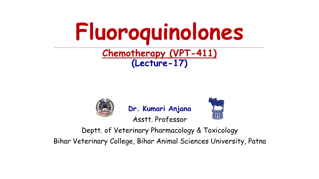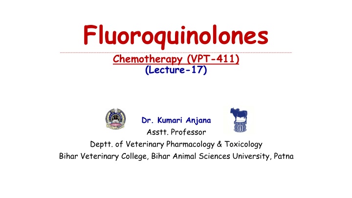 Fluoroquinolones Chemotherapy (VPT-411) (Lecture-17) Dr. Kumari Anjana Asstt. Professor Deptt. of Veterinary Pharmacology & Toxicology Bihar Veterinary College, Bihar Animal Sciences University, Patna