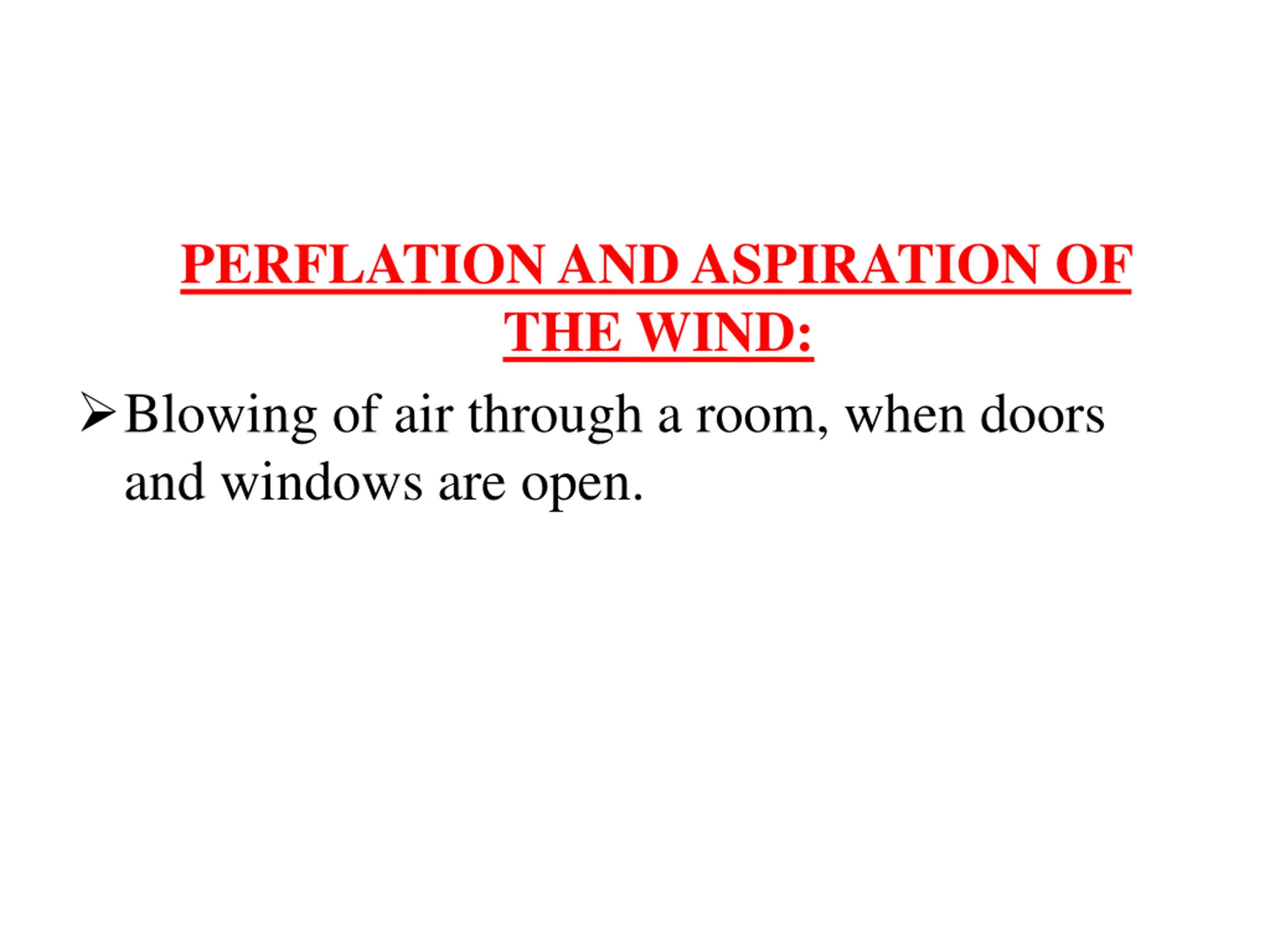 PERFLATION AND ASPIRATION OF THE WIND: Blowing of air through a room, when doors and windows are open.