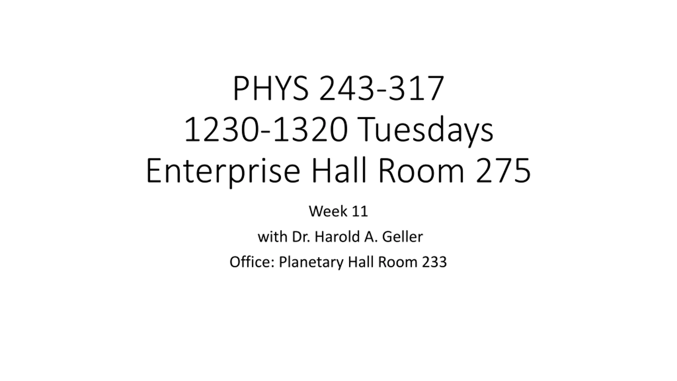 PHYS 243-317 1230-1320 Tuesdays Enterprise Hall Room 275 Week 11 with Dr. Harold A. Geller Office: Planetary Hall Room 233