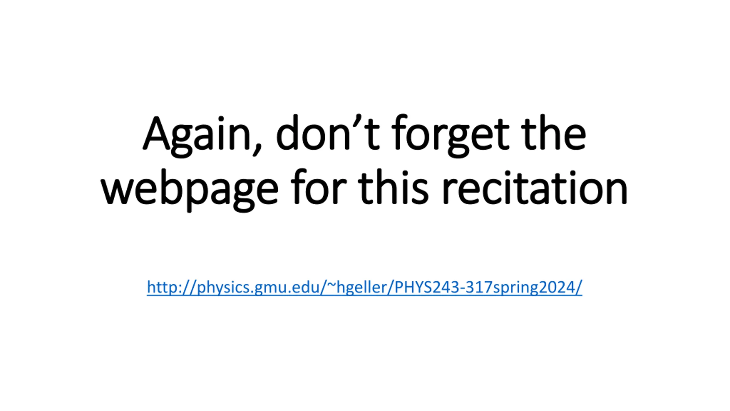 Again, dont forget the Again, don t forget the webpage for this recitation webpage for this recitation http://physics.gmu.edu/~hgeller/PHYS243-317spring2024/