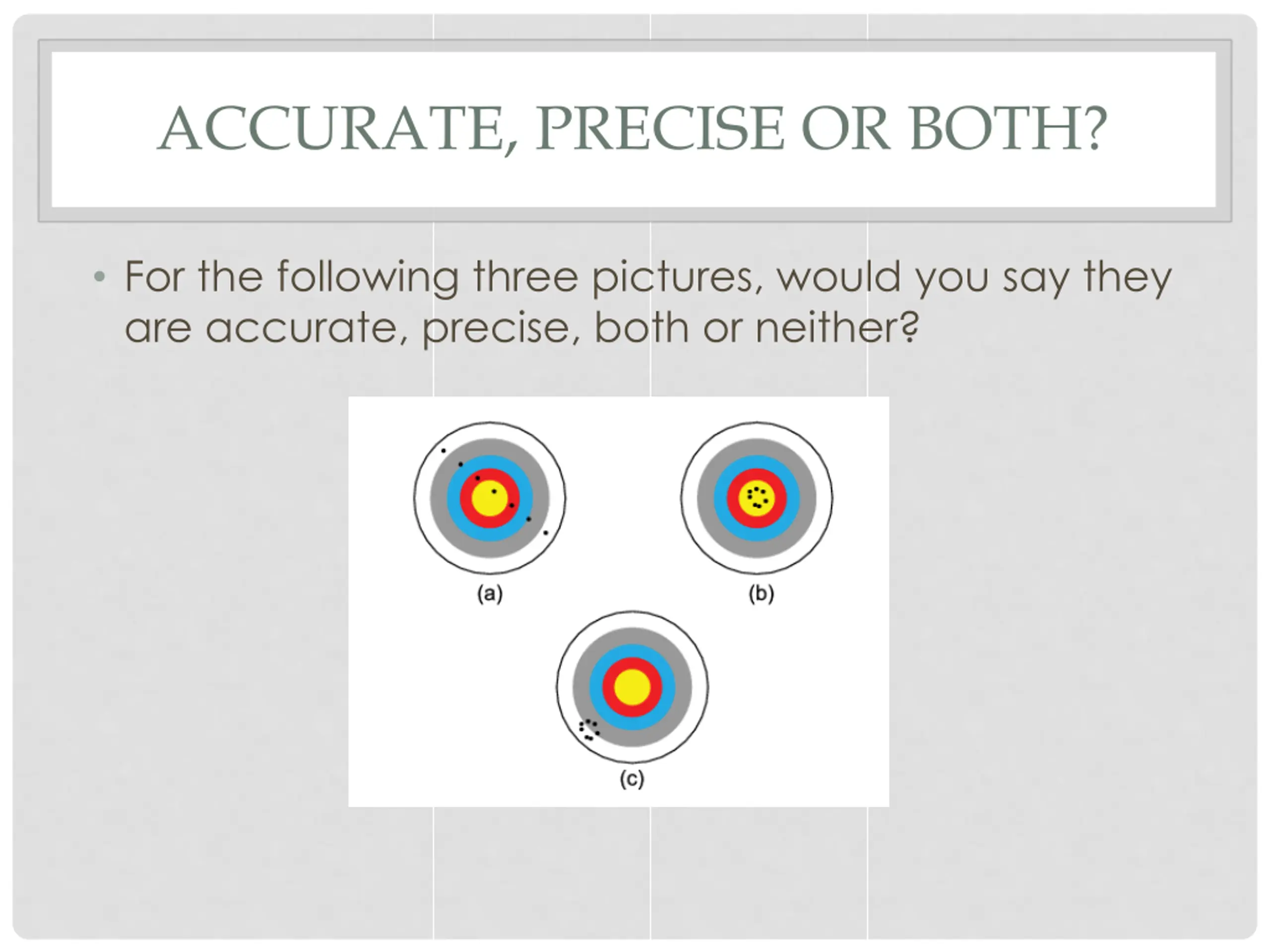 ACCURATE, PRECISE OR BOTH? For the following three pictures, would you say they are accurate, precise, both or neither?