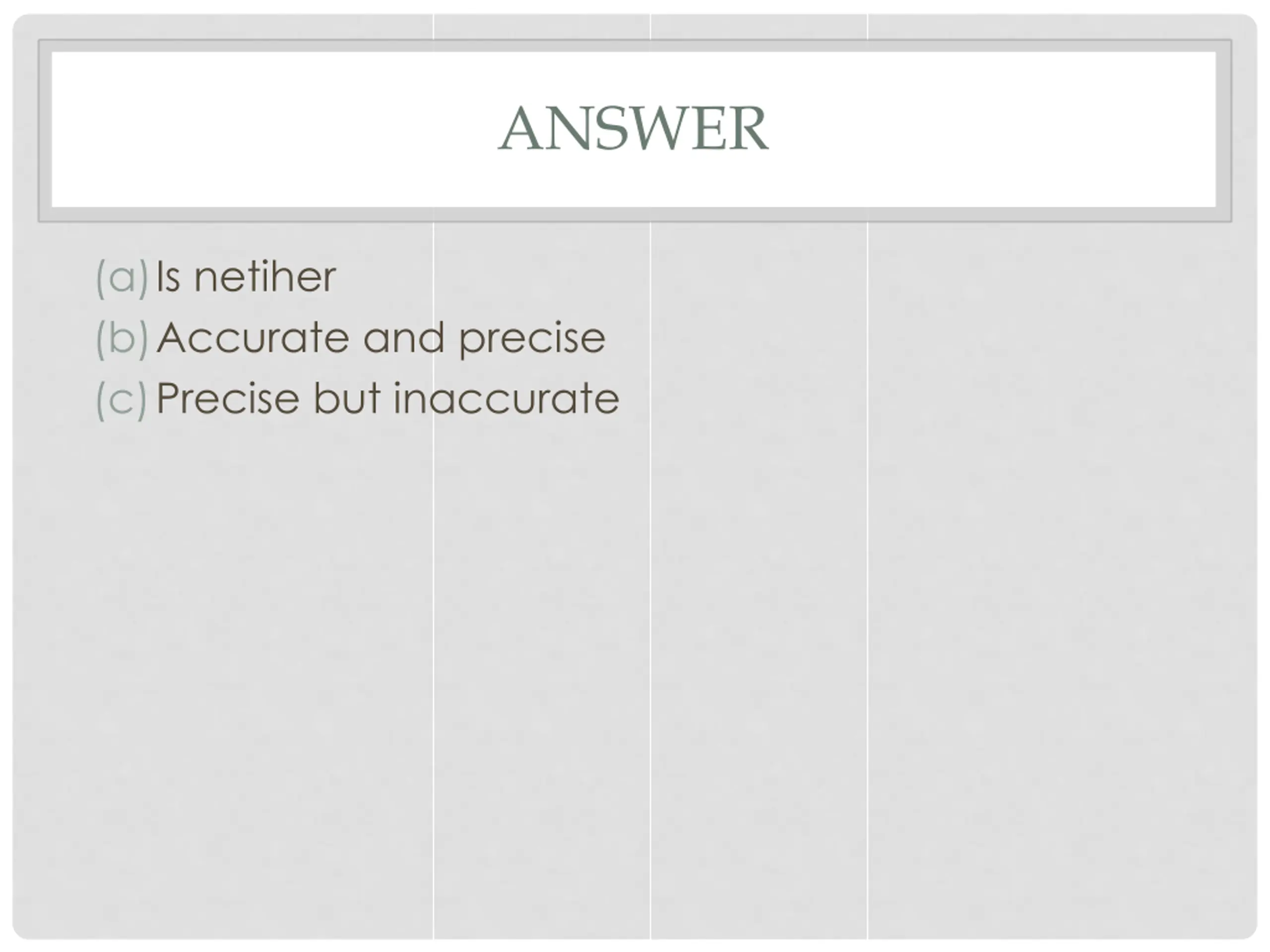 ANSWER (a)Is netiher (b)Accurate and precise (c)Precise but inaccurate