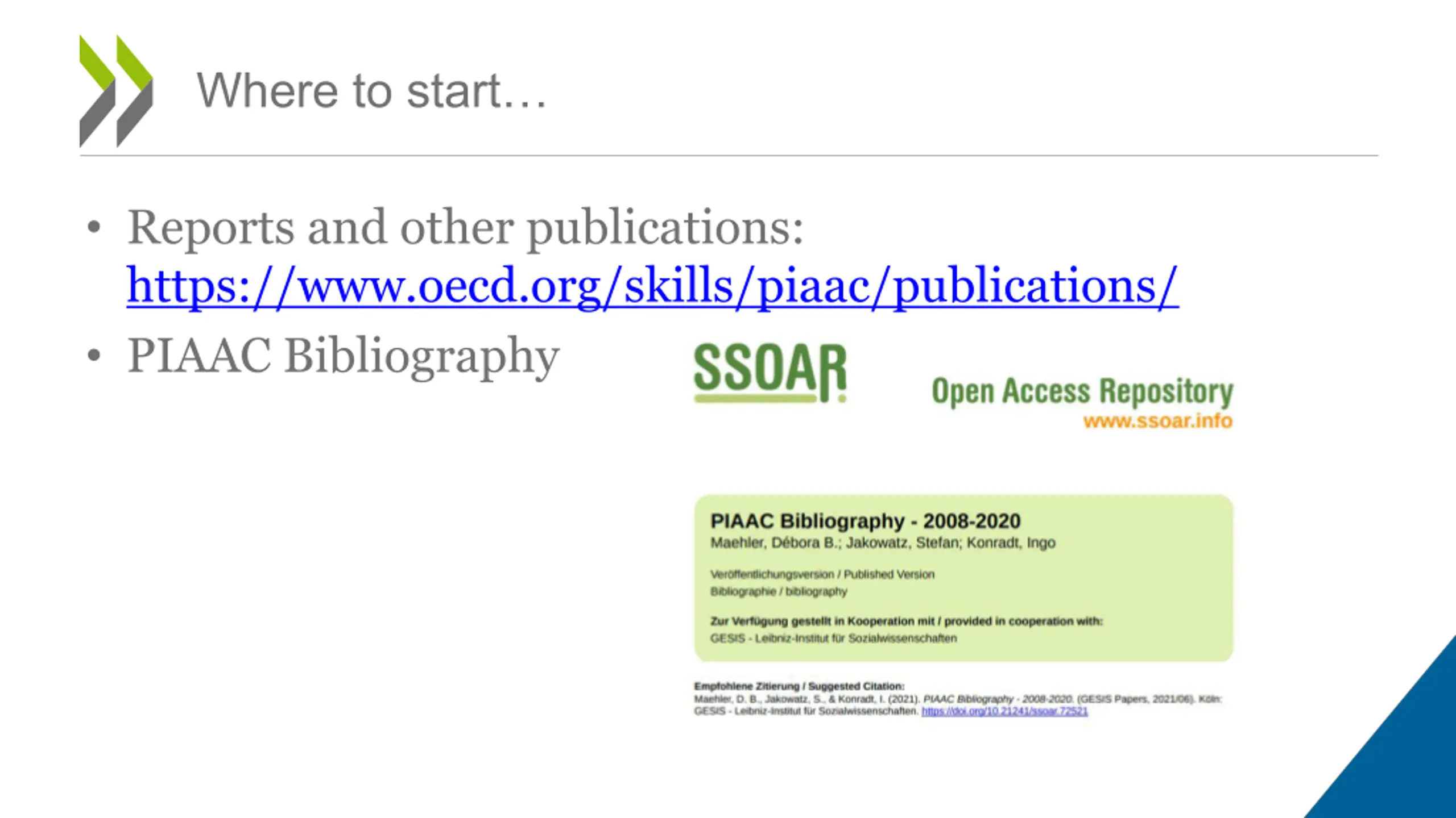 Where to start Reports and other publications: https://www.oecd.org/skills/piaac/publications/ PIAAC Bibliography